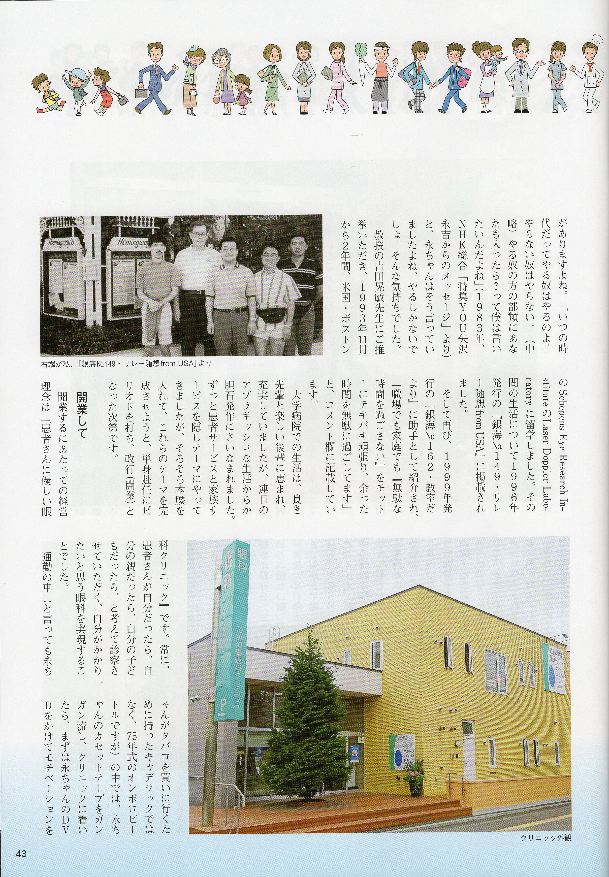 2003年に『患者さんに優しい眼科クリニック』を目指して、開業しました。日帰り白内障手術をメインにして、来てくださった患者さんに安心を持ち帰って欲しいと日々精進しています。今年7月に開業20周年を迎えます。