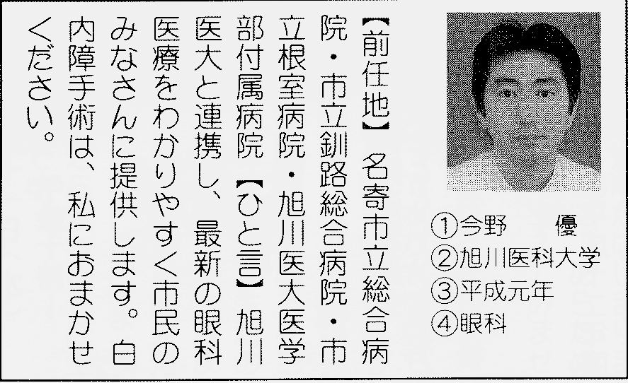 2001年 6月 士別市の広報 こうほう しべつ6月号 No.541 病院・福祉のページの新任の医師紹介に掲載されました。