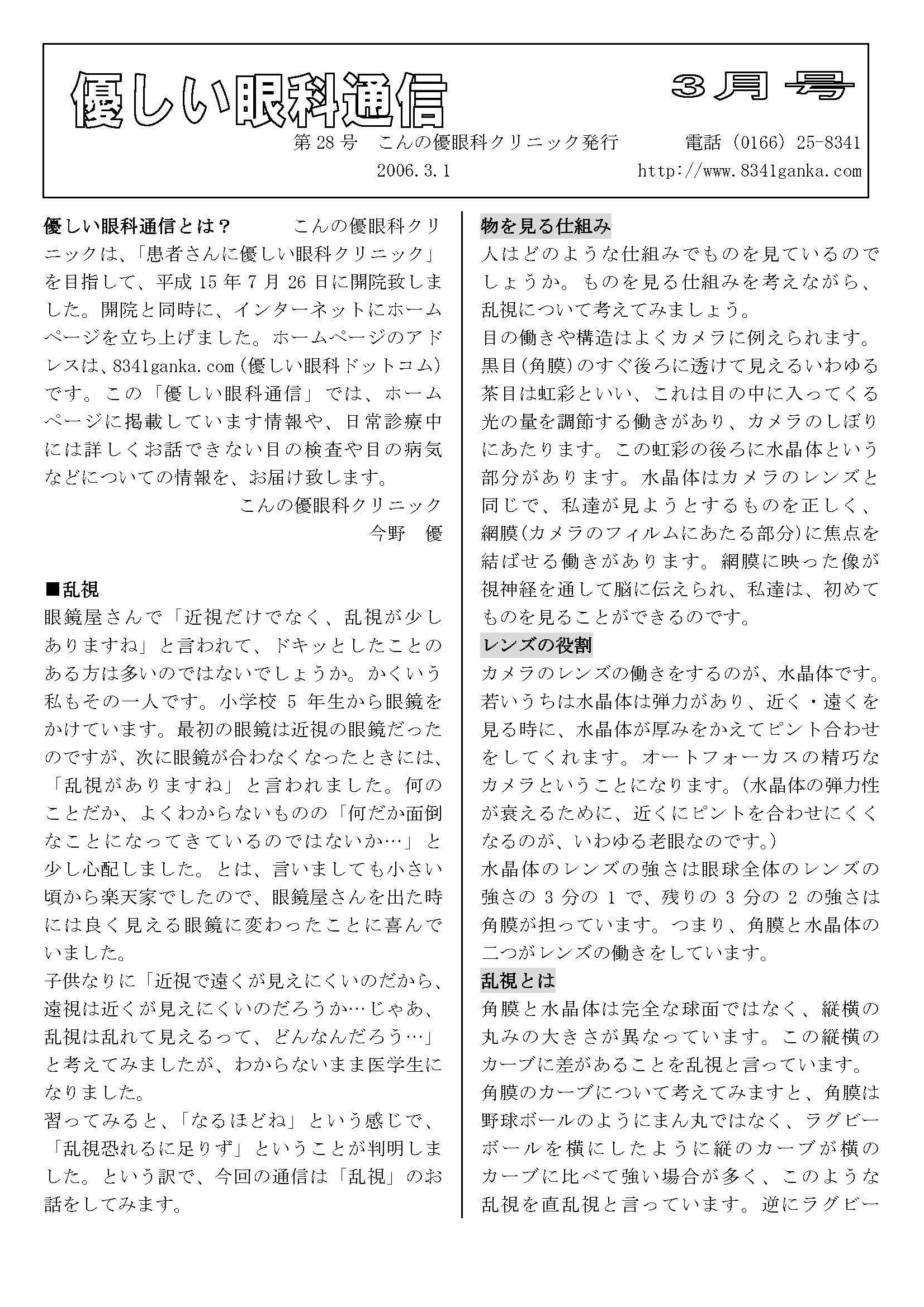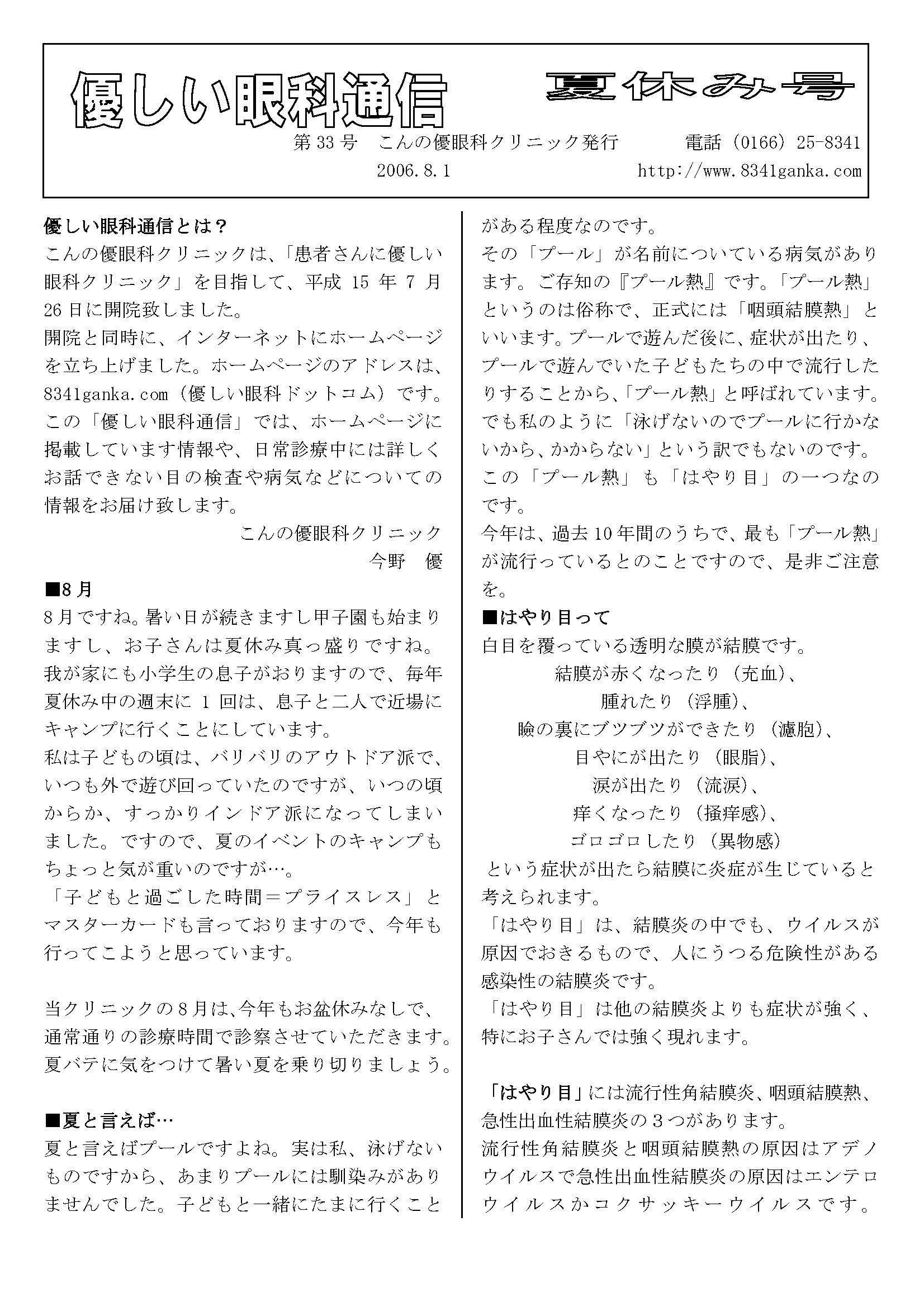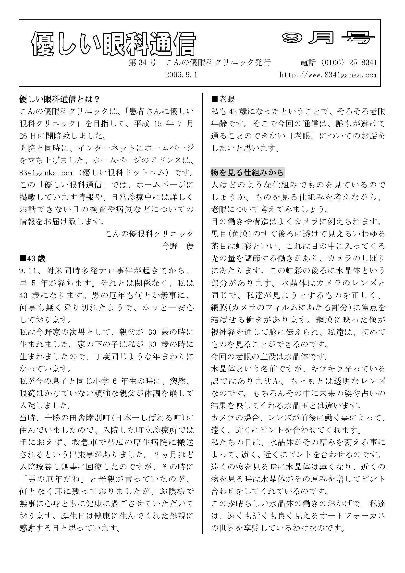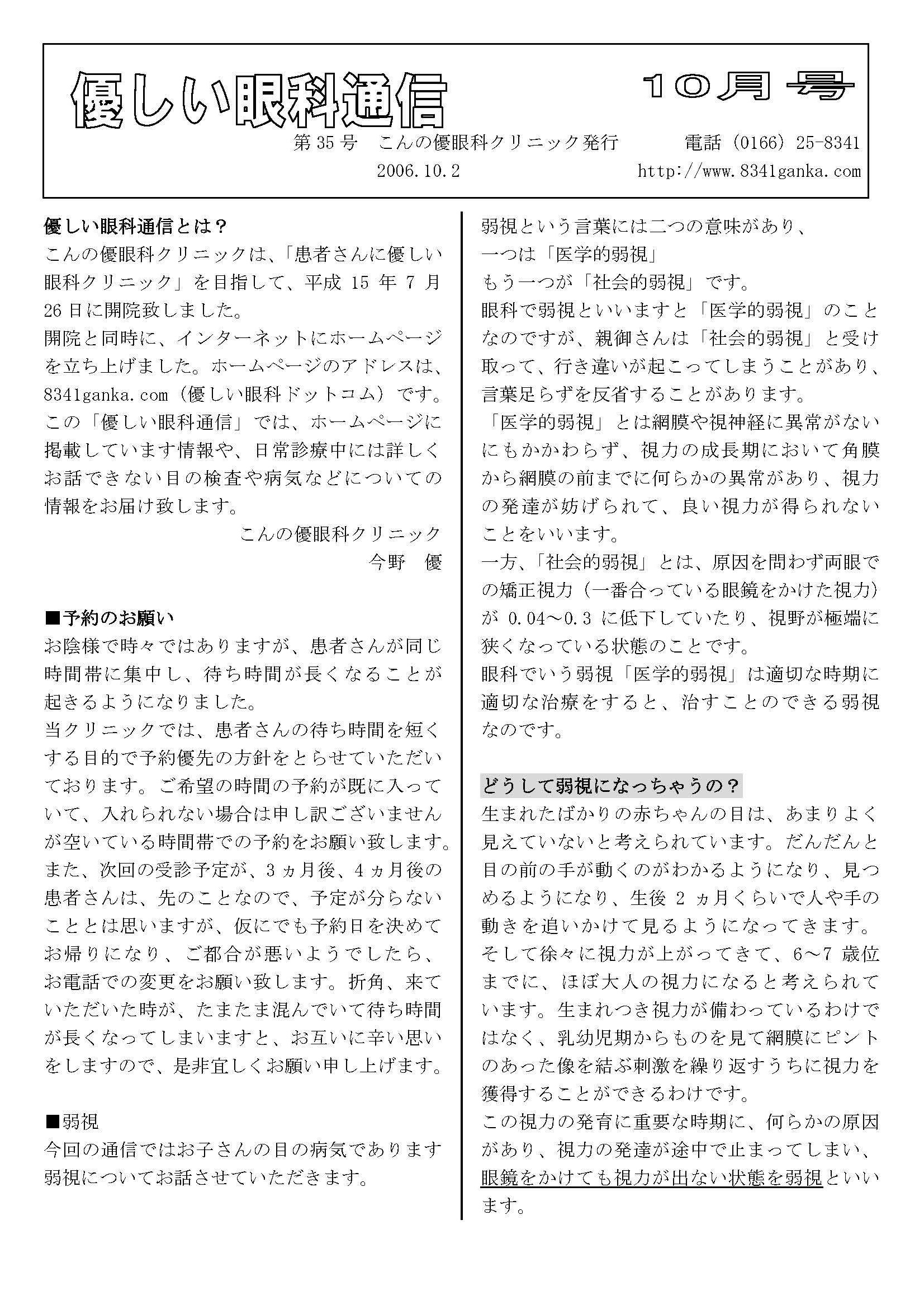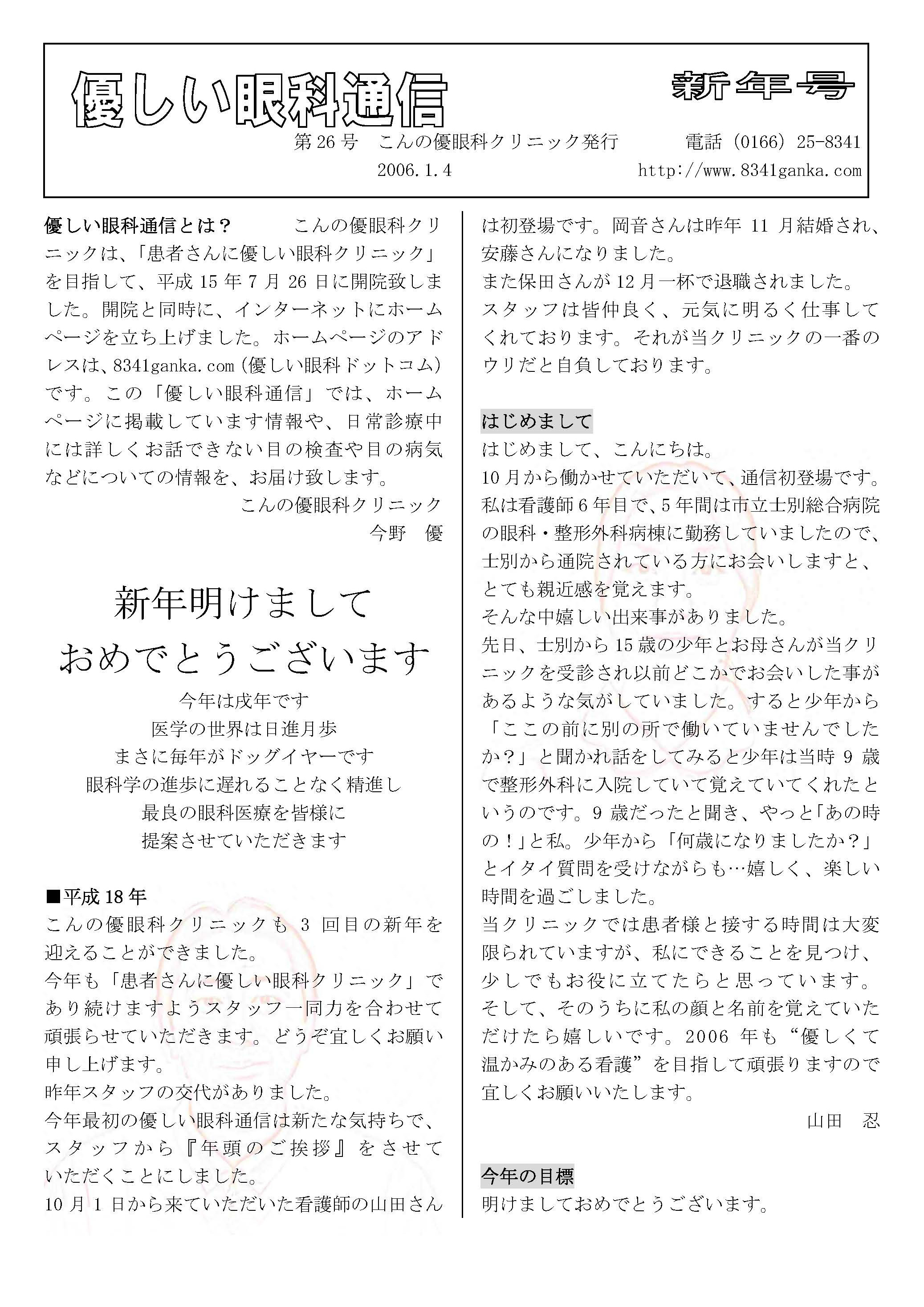 優しい眼科通信2006 第 26〜 37号 |