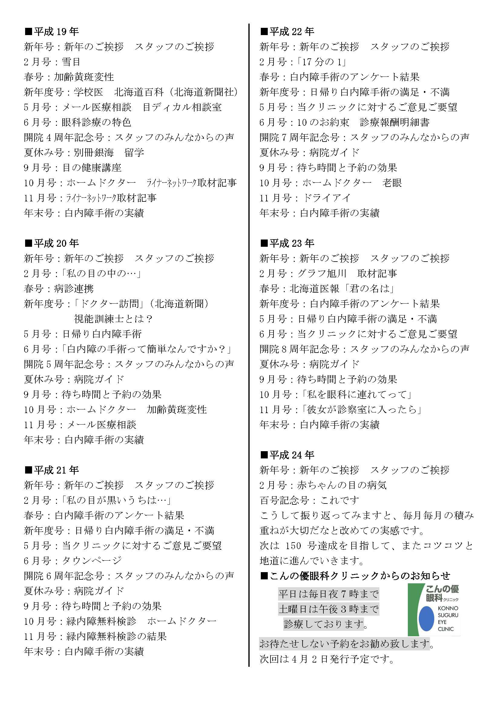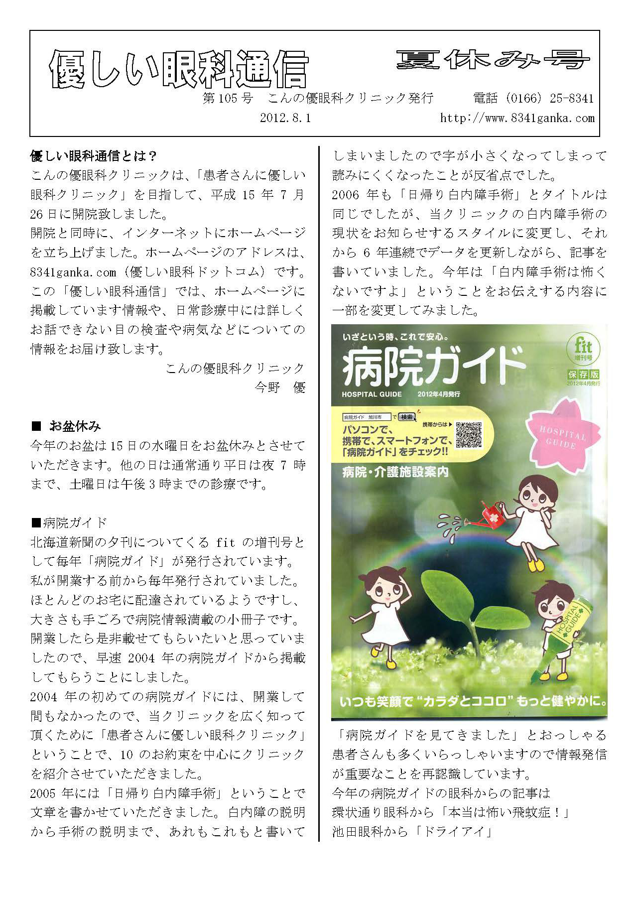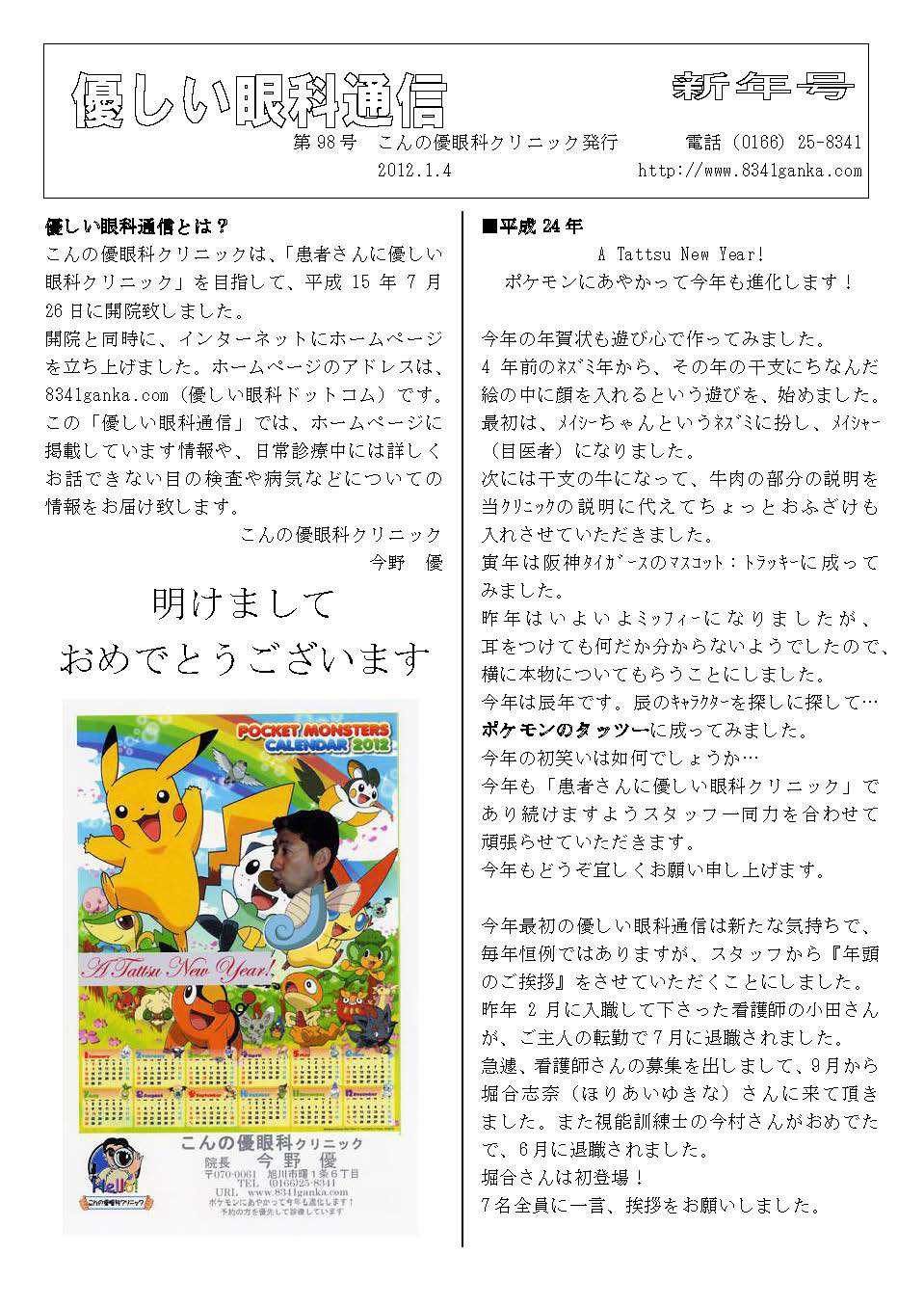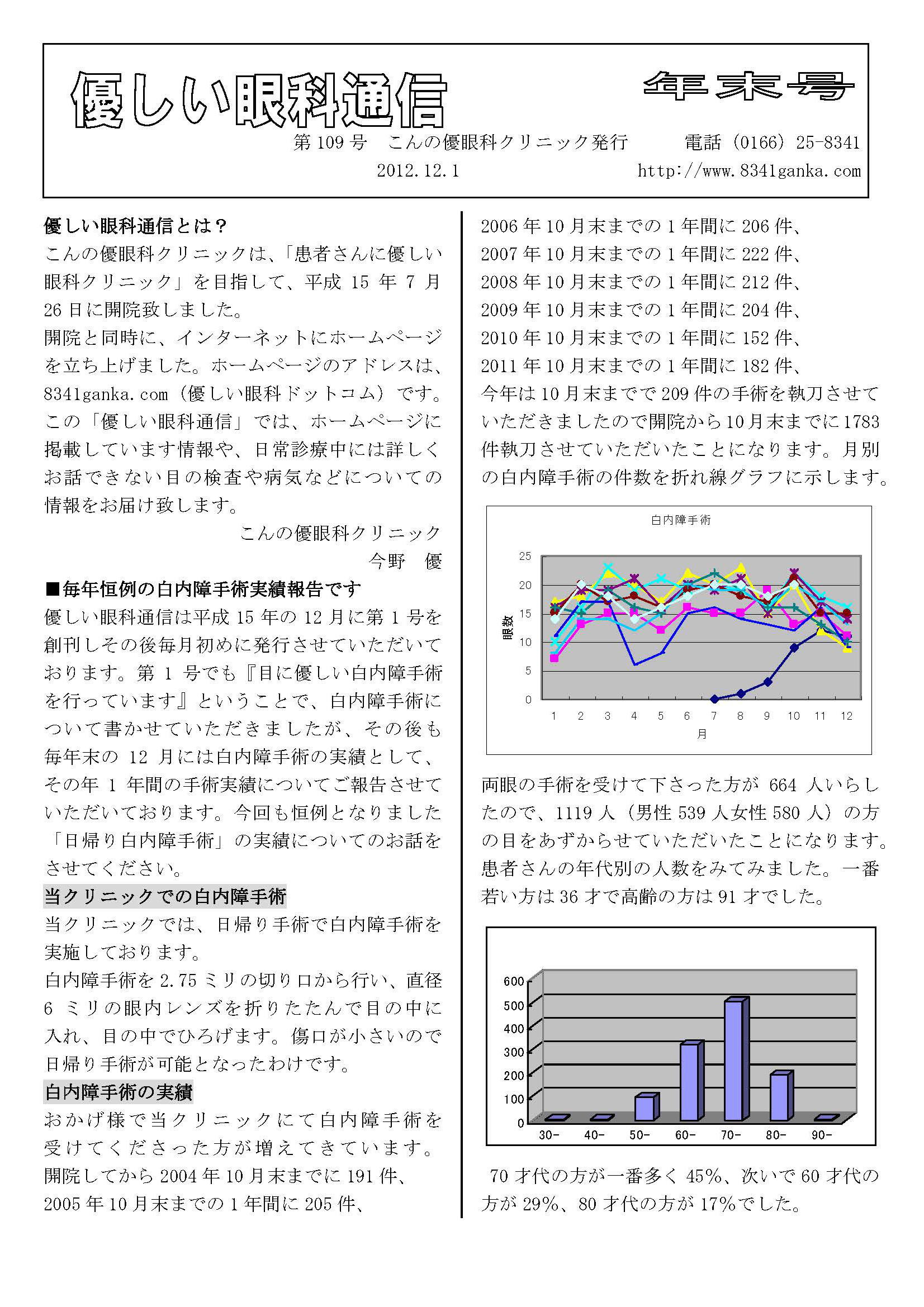 こんの優眼科クリニックは、「患者さんに優しい眼科クリニック」を目指して、平成15年7月26日に開院致しました。開院と同時に、インターネットにホームページを立ち上げました。ホームページのアドレスは8341ganka.com(優しい眼科ドットコム)です。この「優しい眼科通信」では、ホームページに掲載しています情報や、日常診療中には詳しくお話できない目の検査や目の病気などについての情報を、お届けいたします。