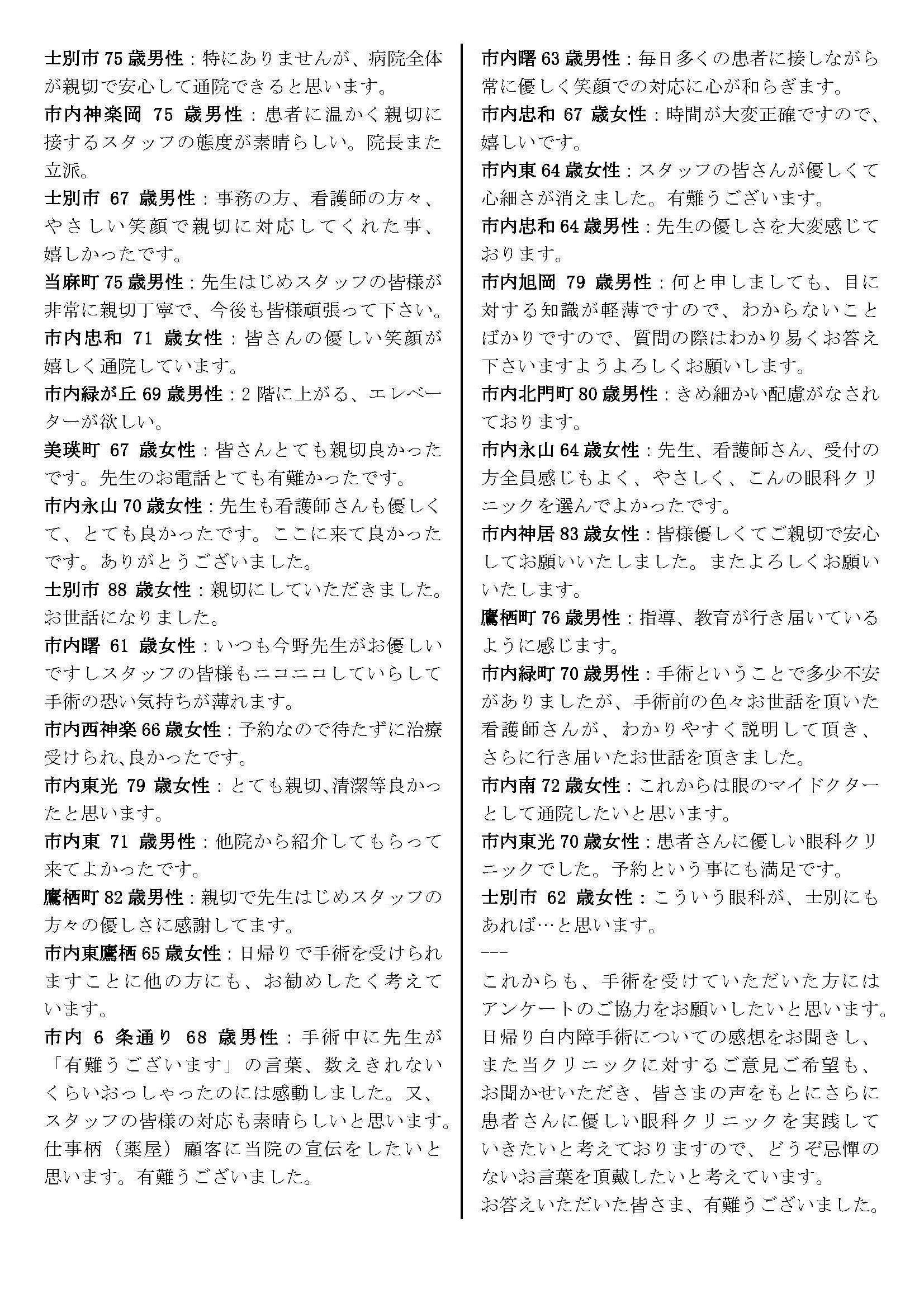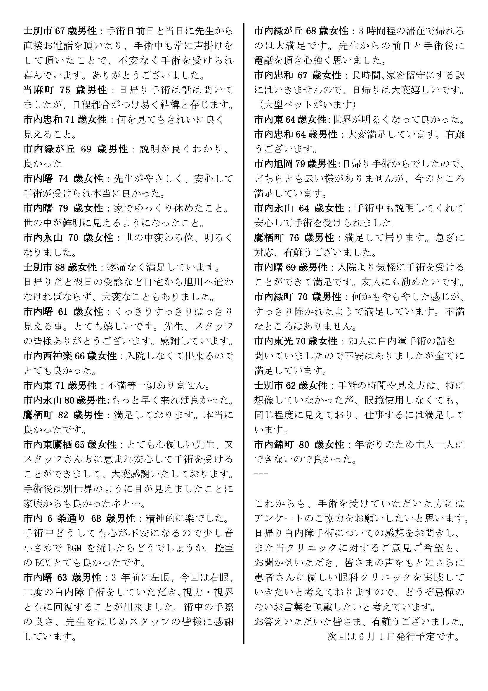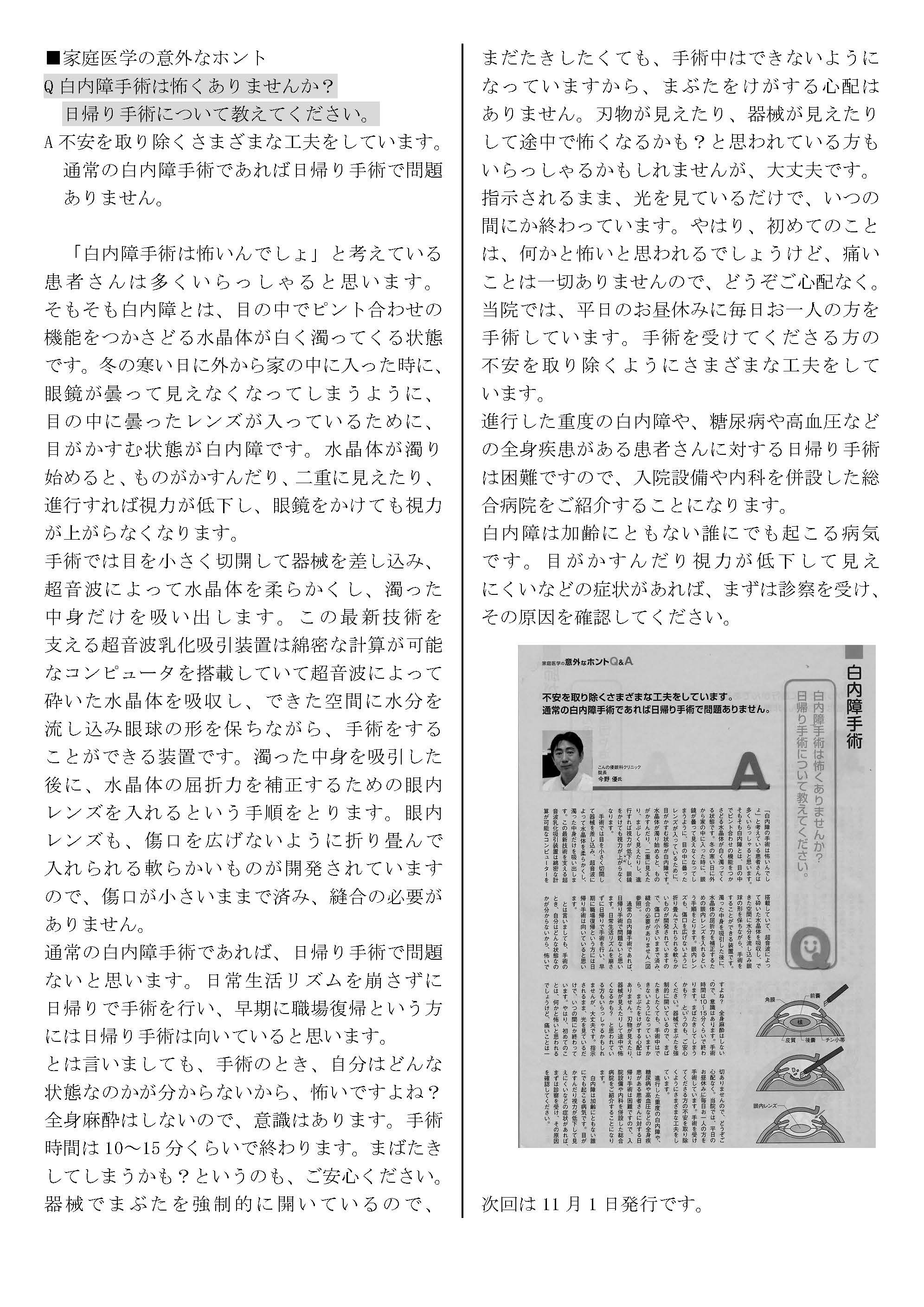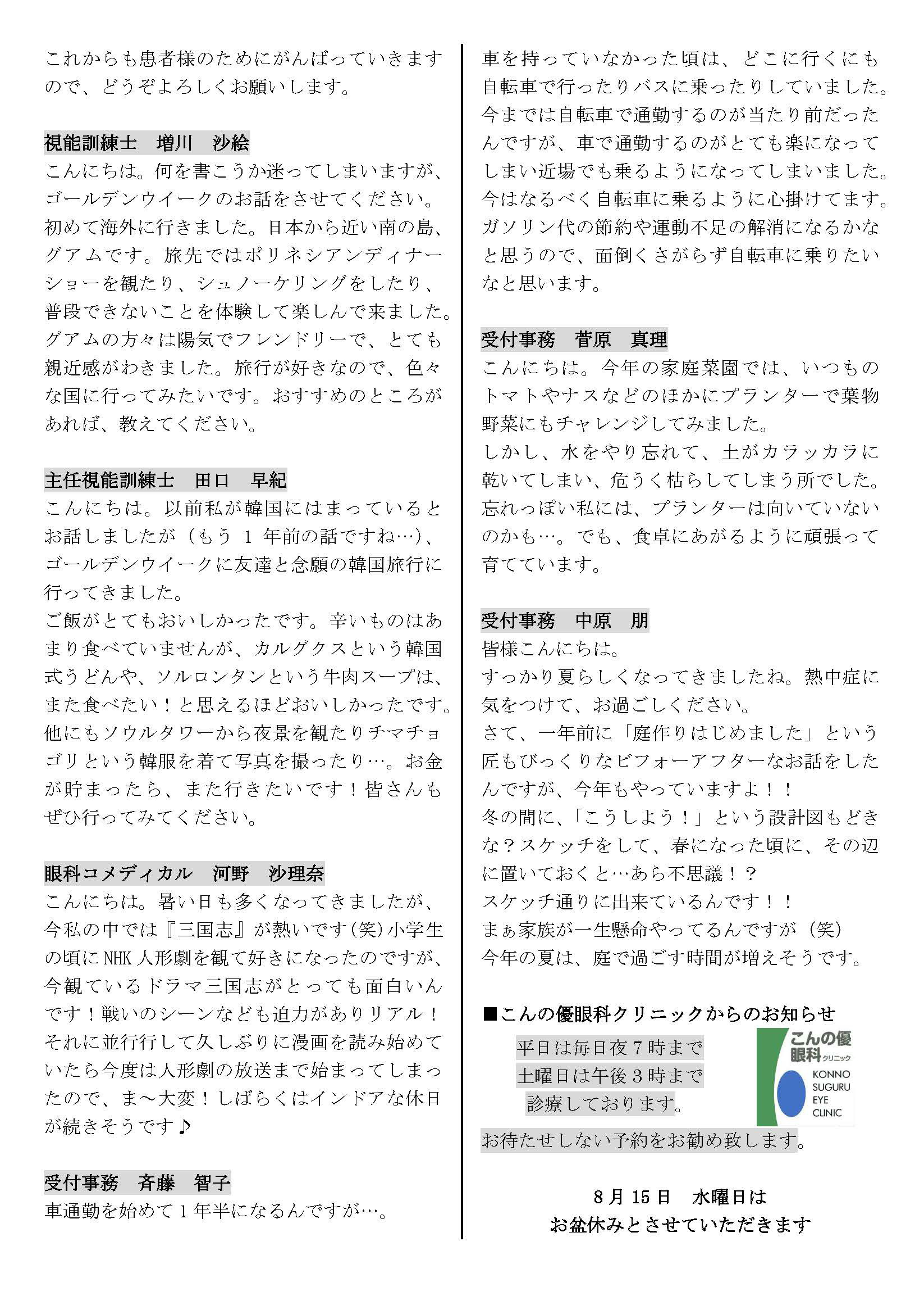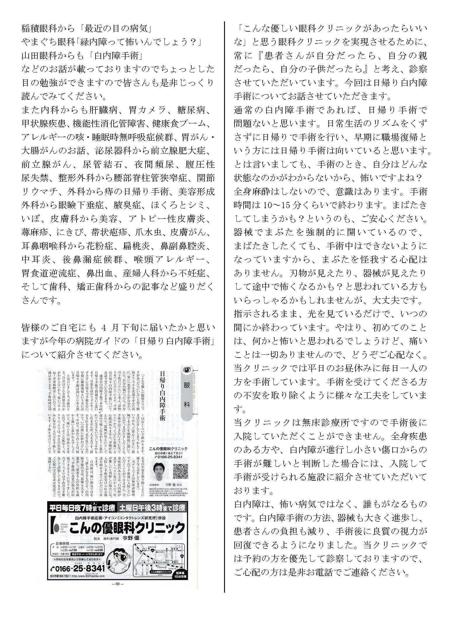 こんの優眼科クリニックは、「患者さんに優しい眼科クリニック」を目指して、平成15年7月26日に開院致しました。開院と同時に、インターネットにホームページを立ち上げました。ホームページのアドレスは8341ganka.com(優しい眼科ドットコム)です。この「優しい眼科通信」では、ホームページに掲載しています情報や、日常診療中には詳しくお話できない目の検査や目の病気などについての情報を、お届けいたします。