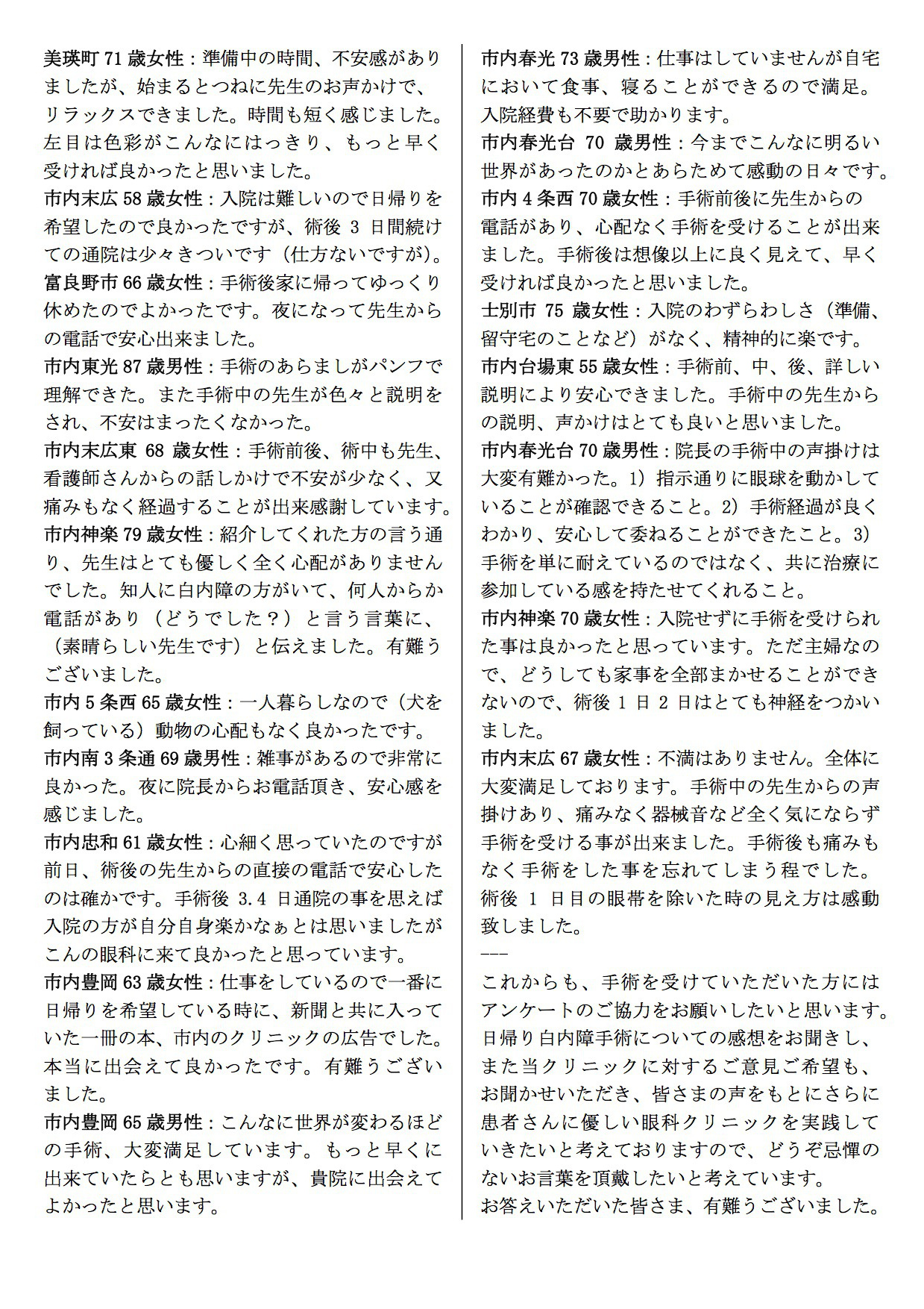 質問と回答をホームページ上に公開することもありますので、ご了承ください。その際にも、プライバシー保護には充分注意致します。