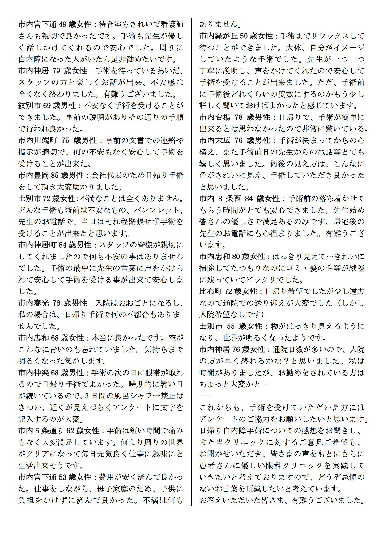 質問と回答をホームページ上に公開することもありますので、ご了承ください。その際にも、プライバシー保護には充分注意致します。