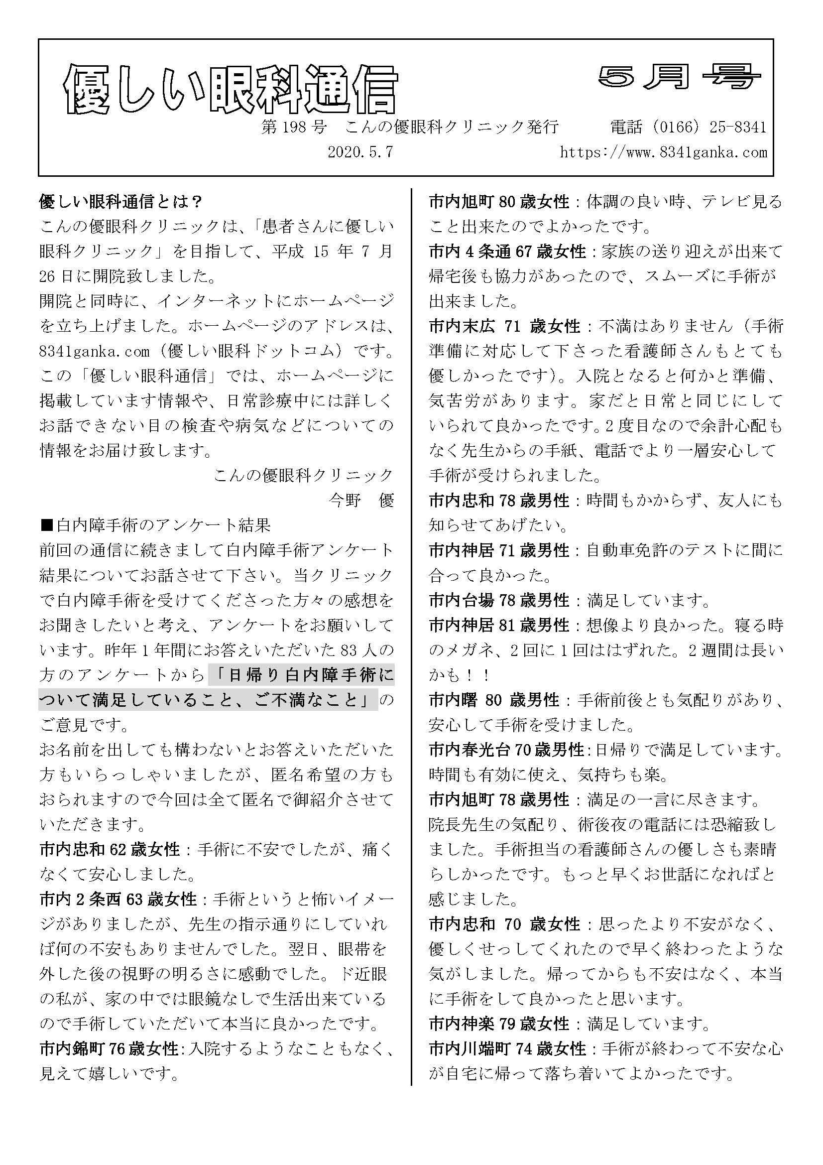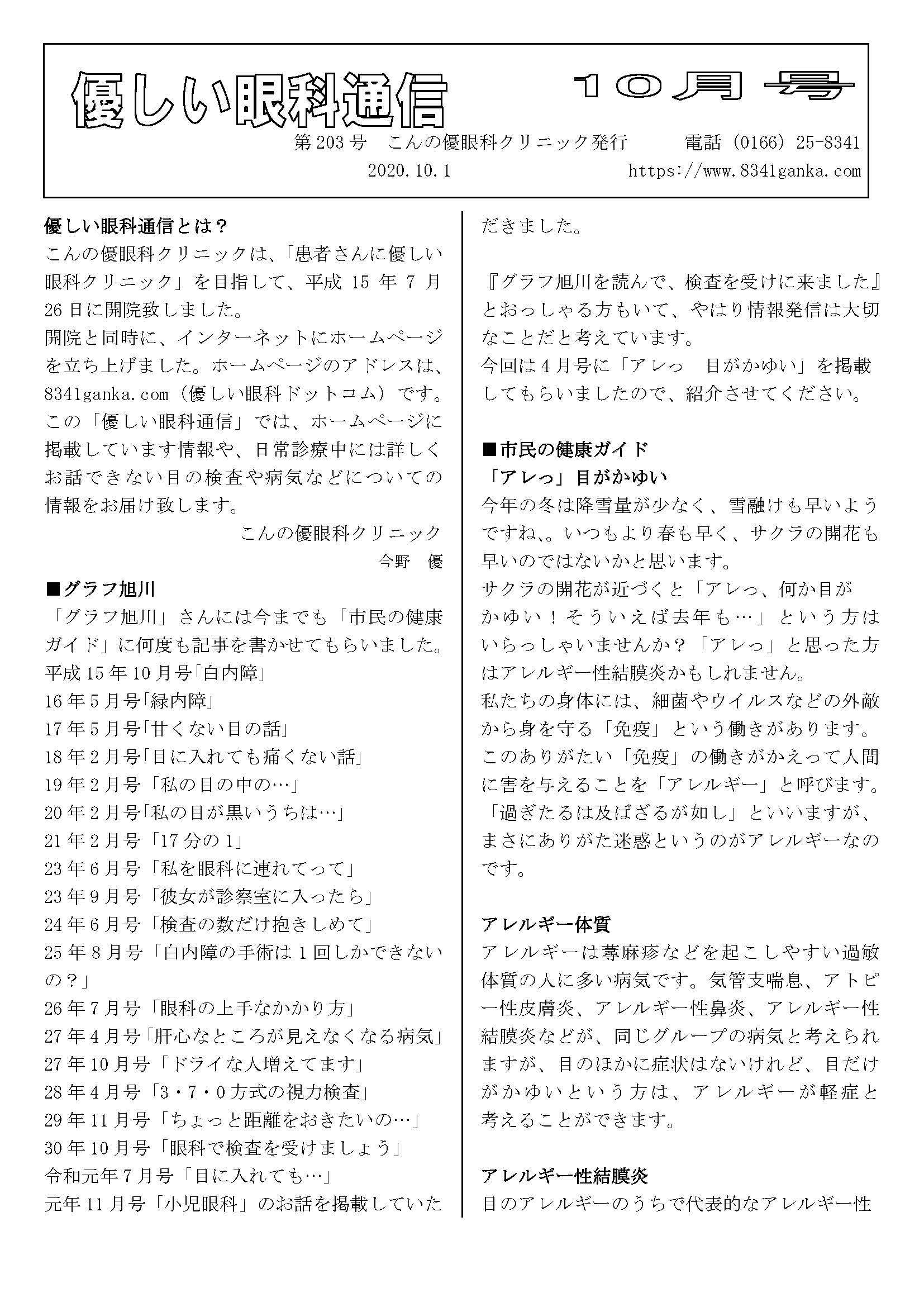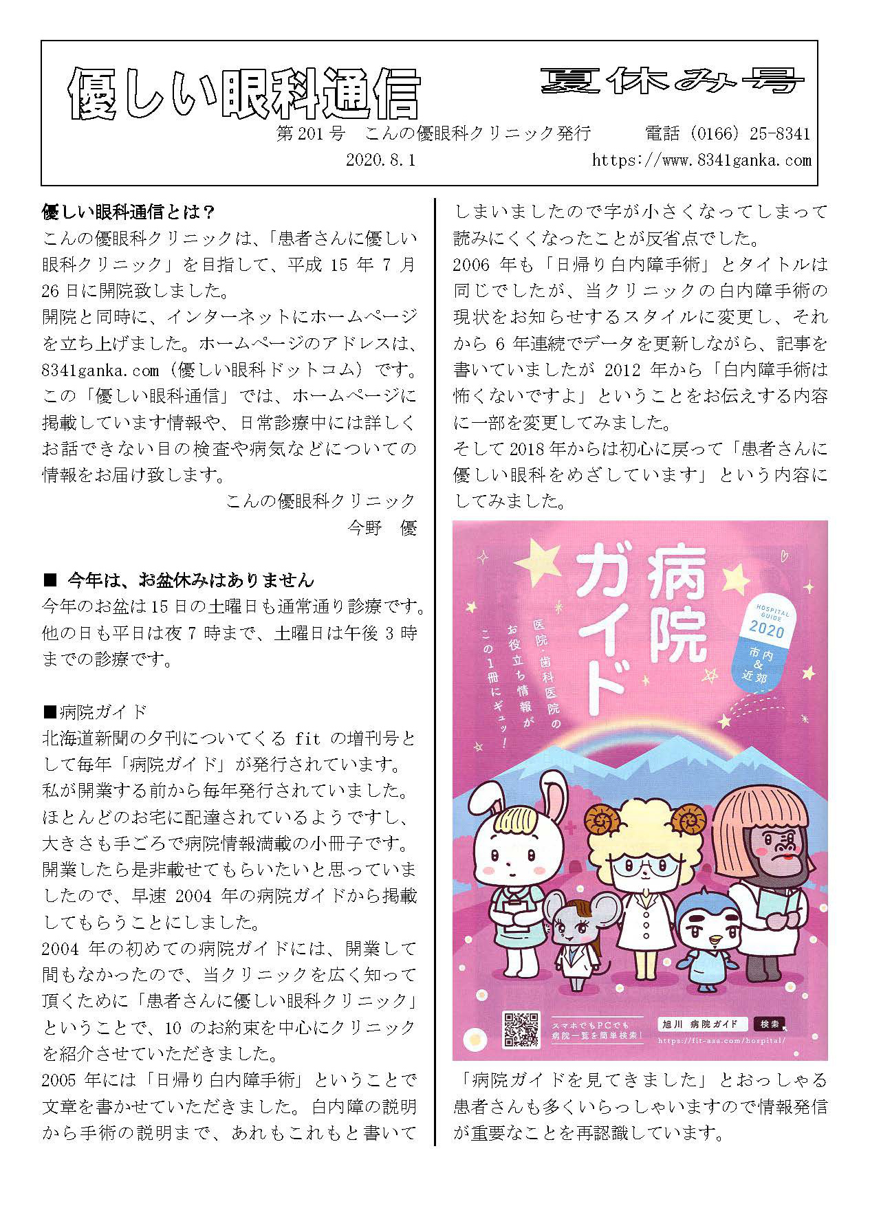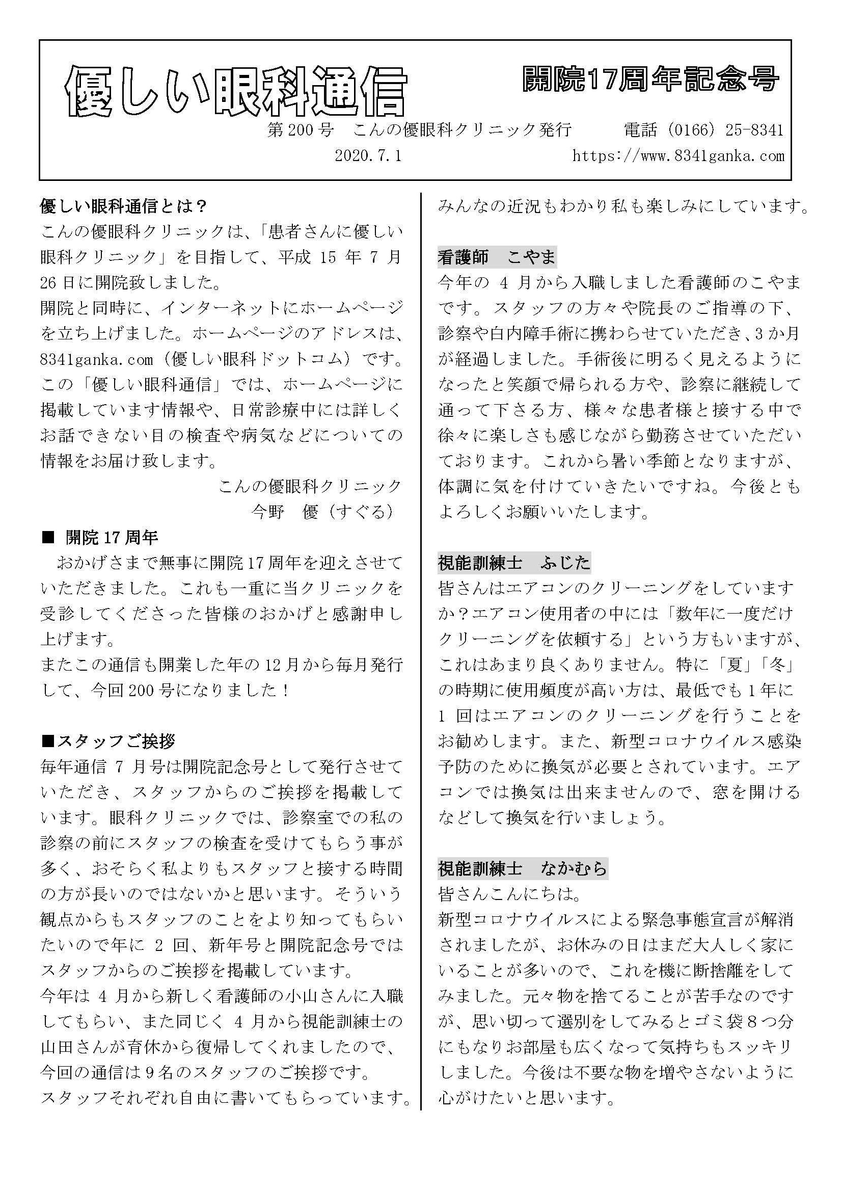 こんの優眼科クリニックは、「患者さんに優しい眼科クリニック」を目指して、平成15年7月26日に開院致しました。開院と同時に、インターネットにホームページを立ち上げました。ホームページのアドレスは8341ganka.com(優しい眼科ドットコム)です。この「優しい眼科通信」では、ホームページに掲載しています情報や、日常診療中には詳しくお話できない目の検査や目の病気などについての情報を、お届けいたします。