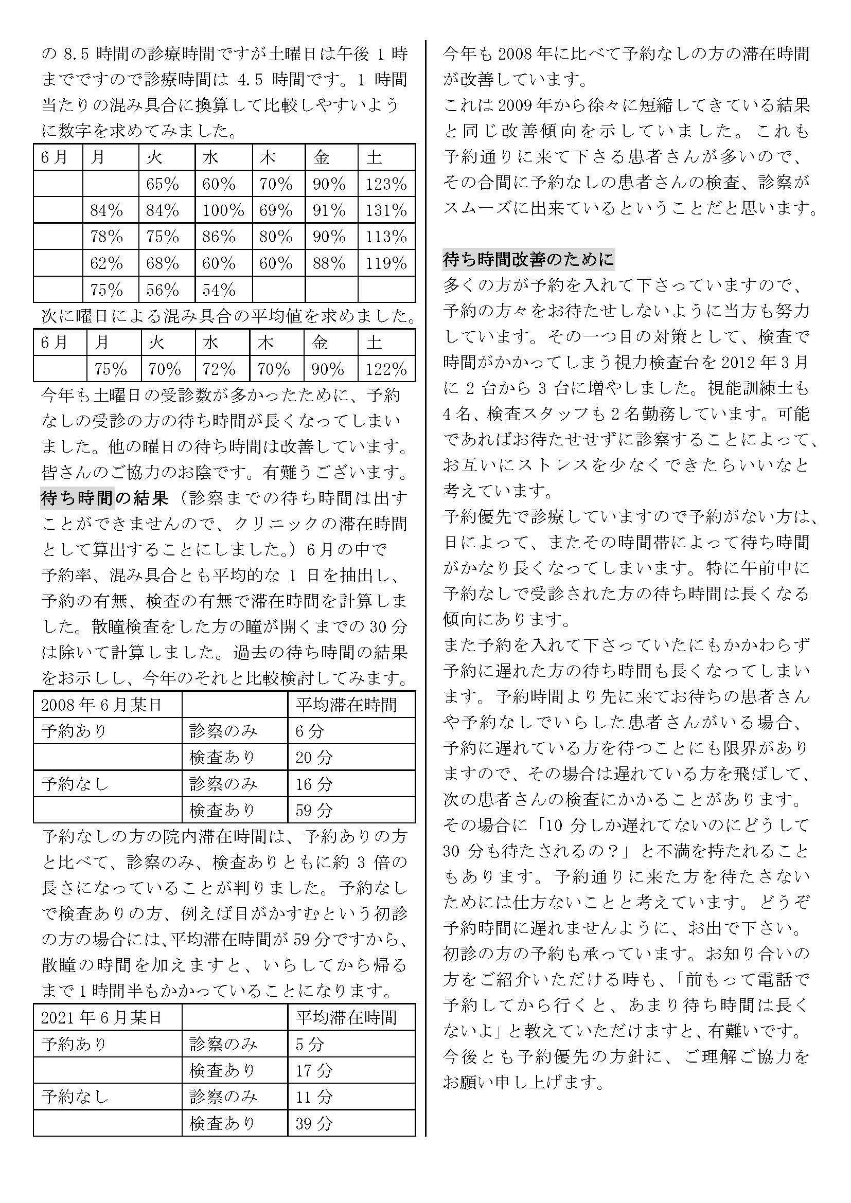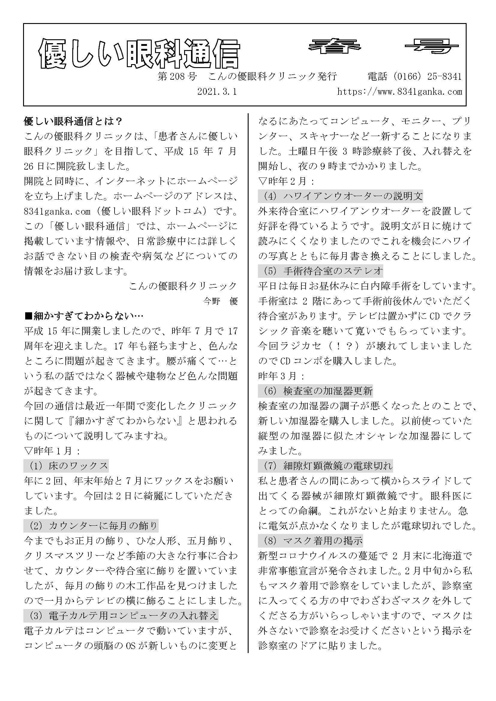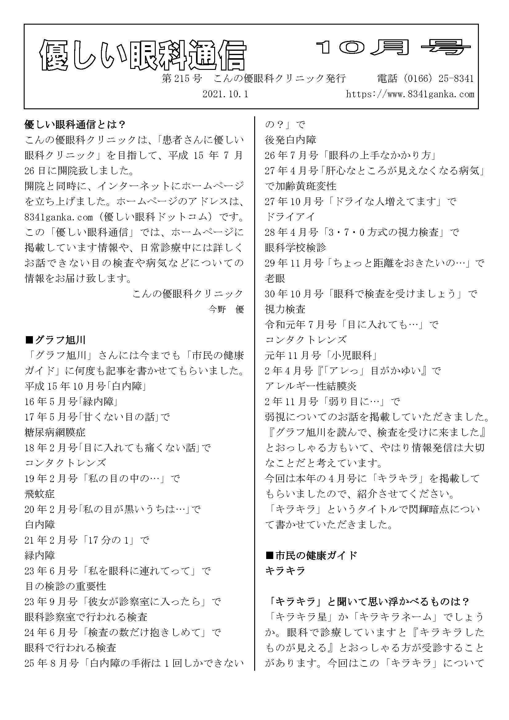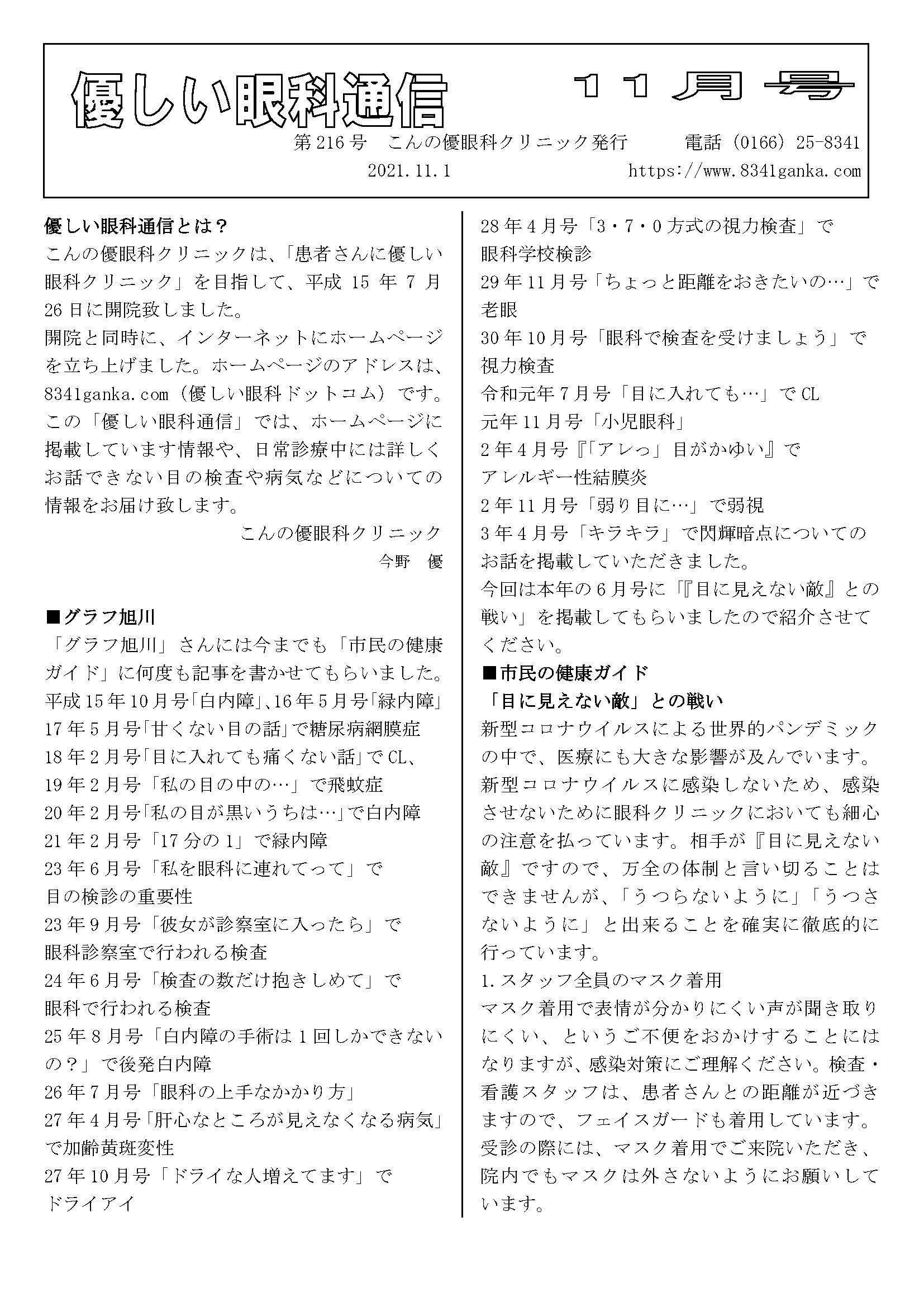こんの優眼科クリニックは、「患者さんに優しい眼科クリニック」を目指して、平成15年7月26日に開院致しました。開院と同時に、インターネットにホームページを立ち上げました。ホームページのアドレスは8341ganka.com(優しい眼科ドットコム)です。この「優しい眼科通信」では、ホームページに掲載しています情報や、日常診療中には詳しくお話できない目の検査や目の病気などについての情報を、お届けいたします。