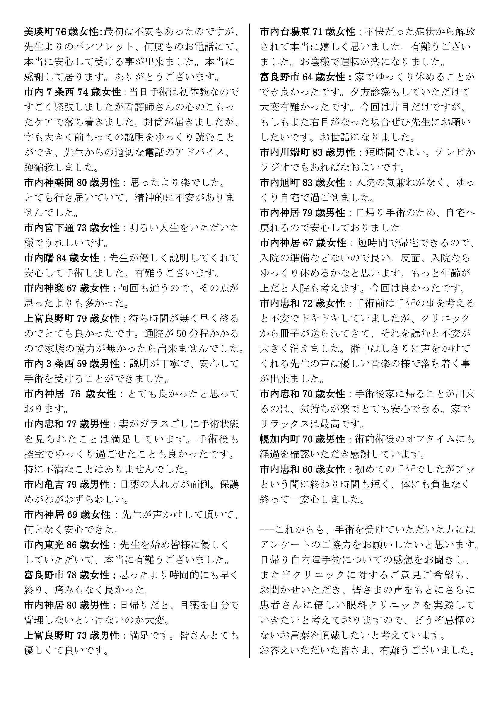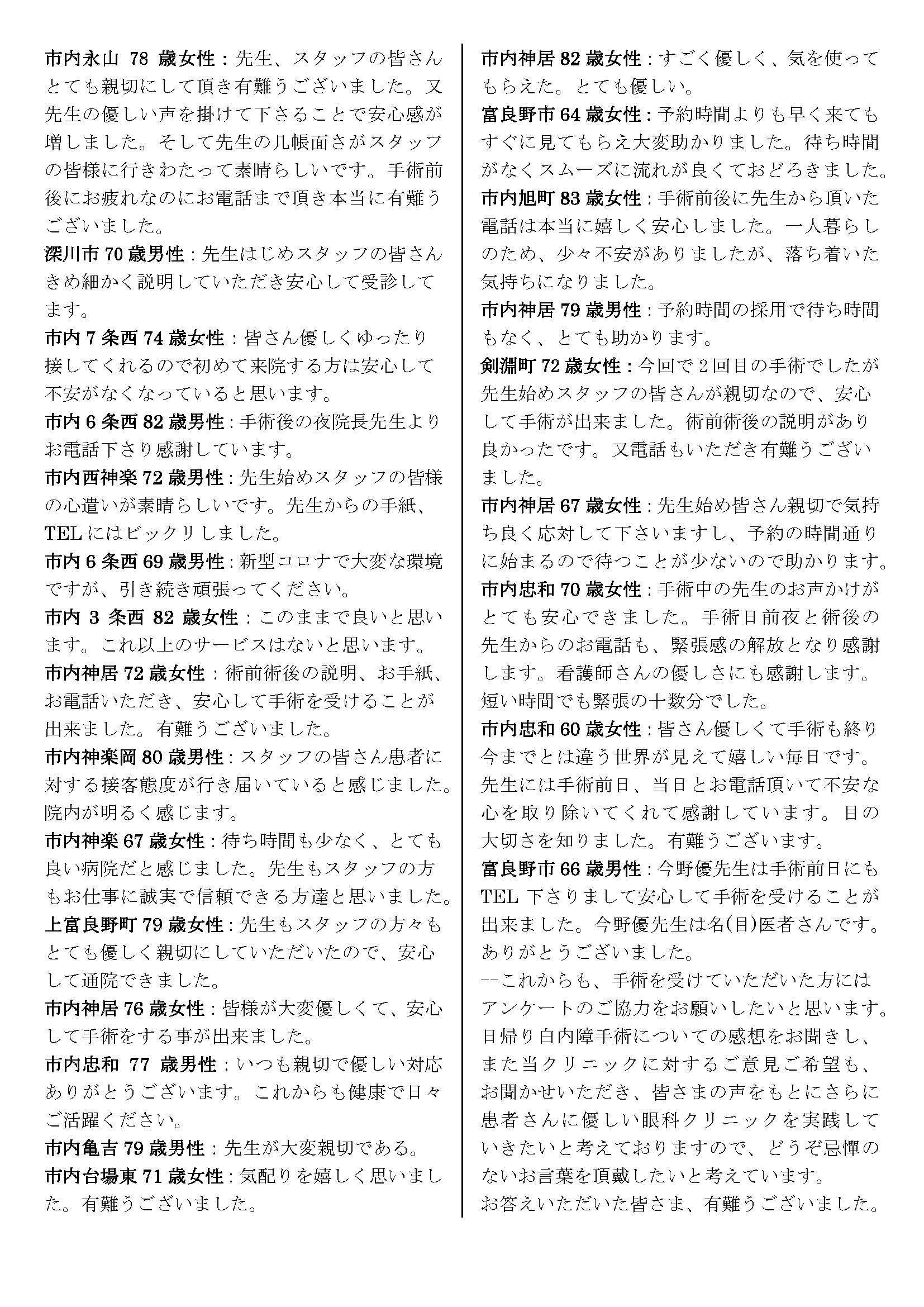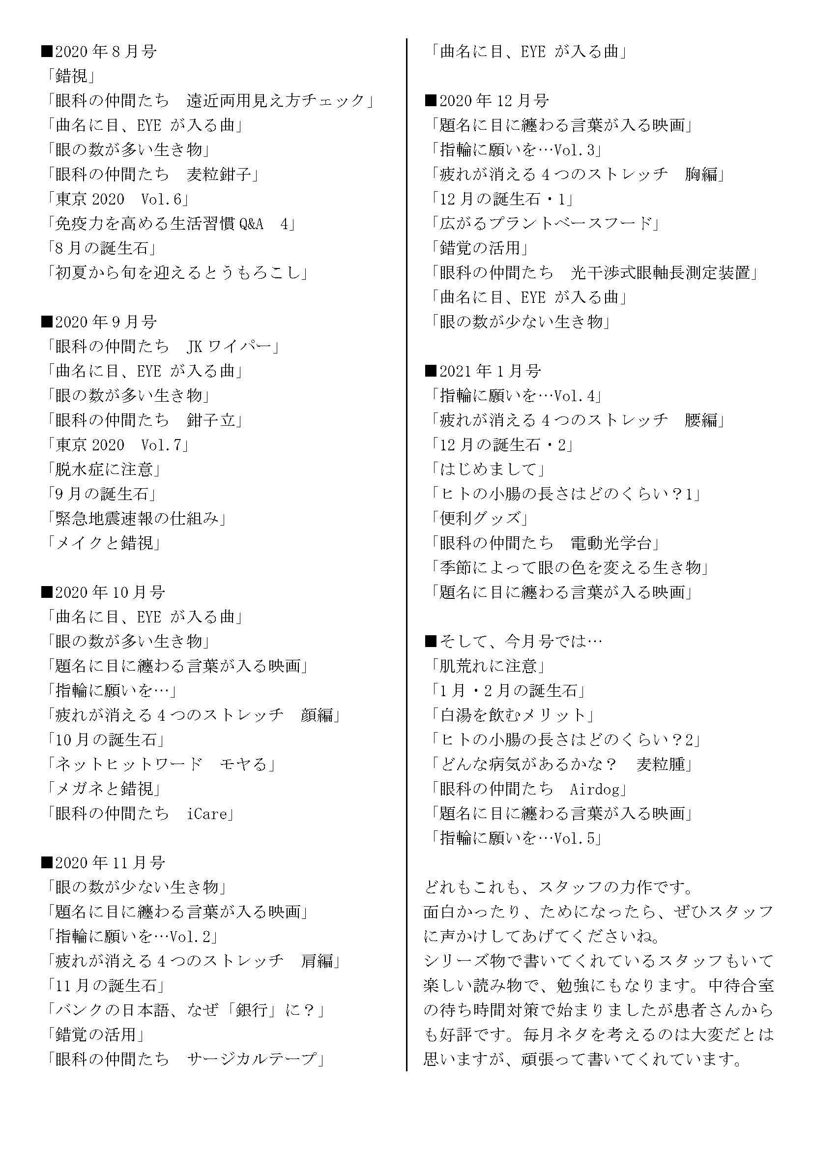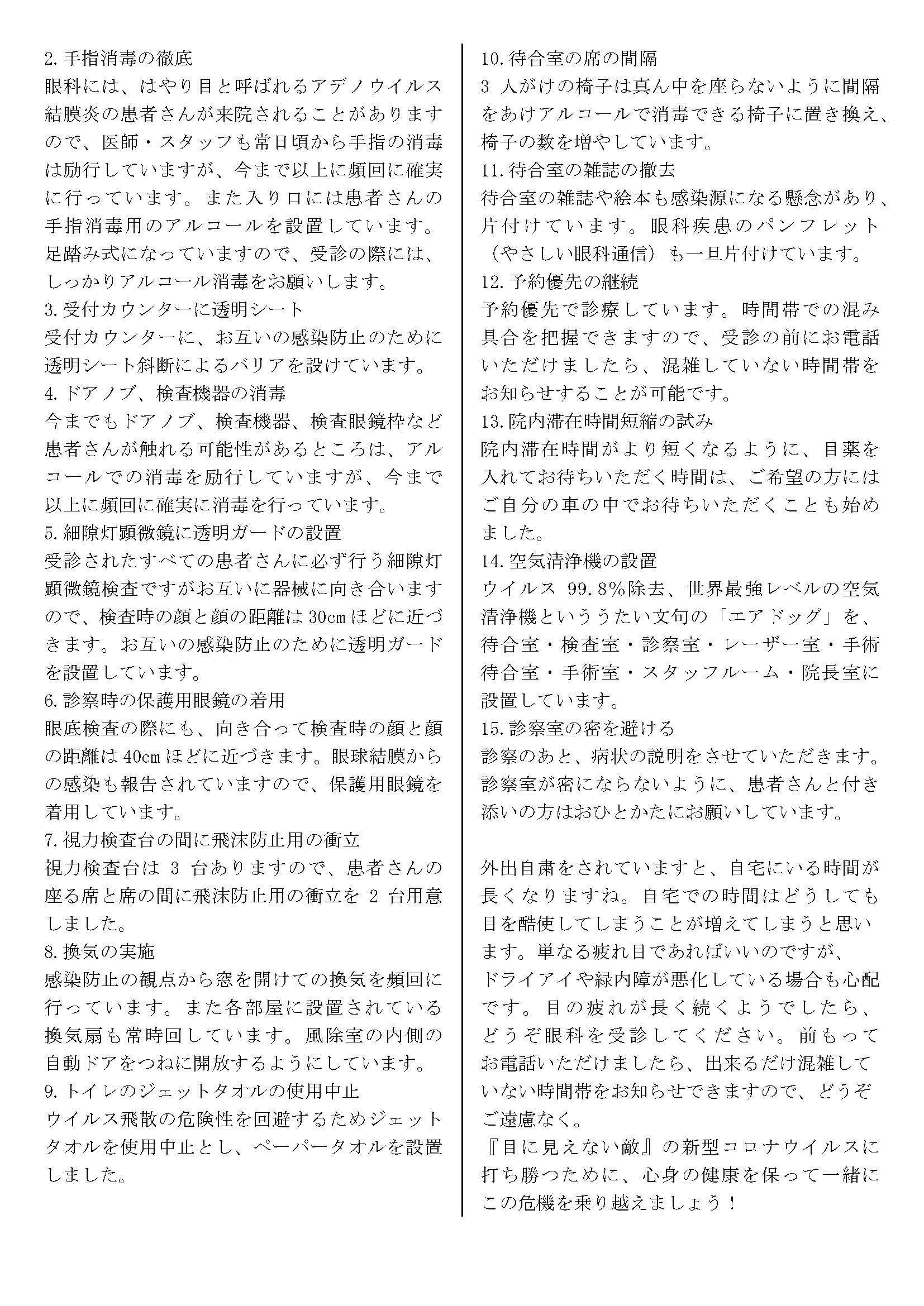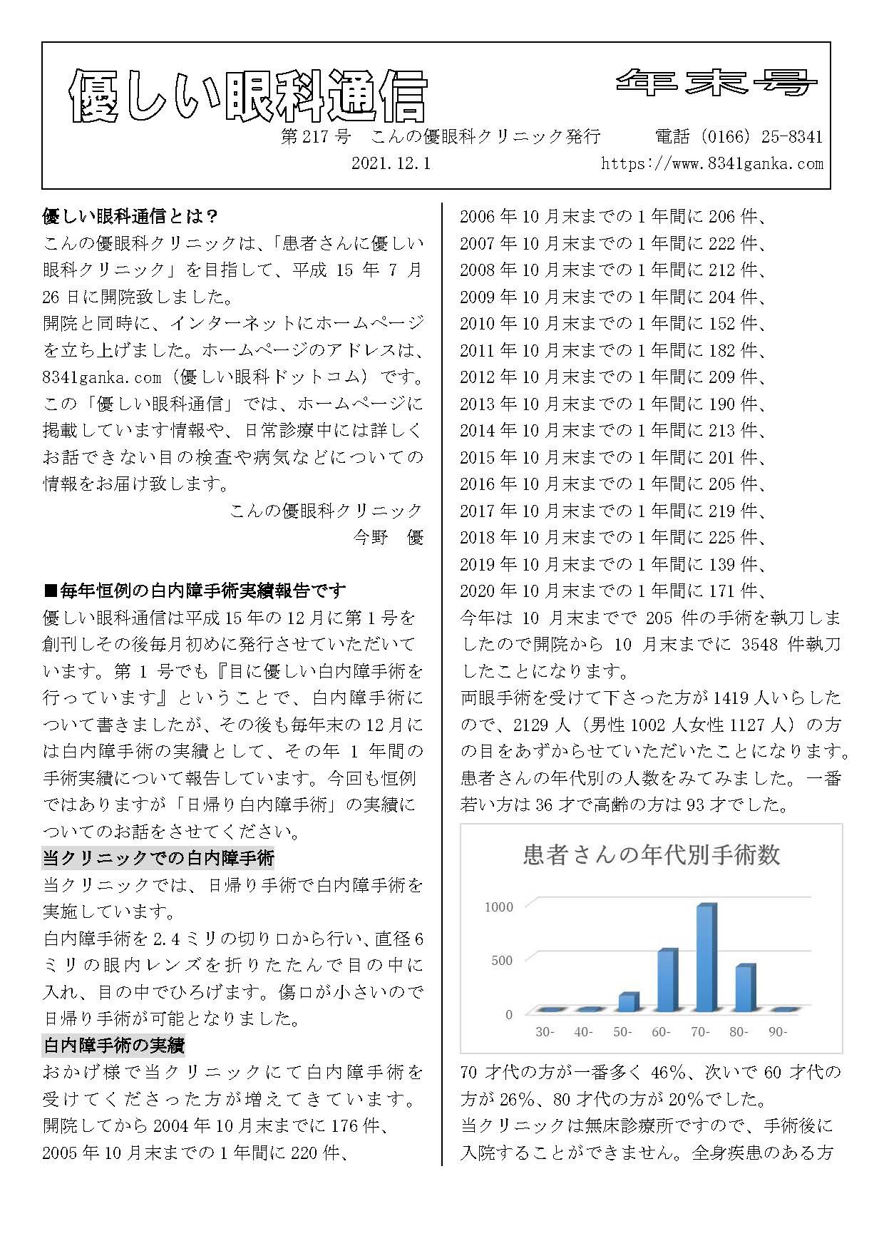 こんの優眼科クリニックは、「患者さんに優しい眼科クリニック」を目指して、平成15年7月26日に開院致しました。開院と同時に、インターネットにホームページを立ち上げました。ホームページのアドレスは8341ganka.com(優しい眼科ドットコム)です。この「優しい眼科通信」では、ホームページに掲載しています情報や、日常診療中には詳しくお話できない目の検査や目の病気などについての情報を、お届けいたします。