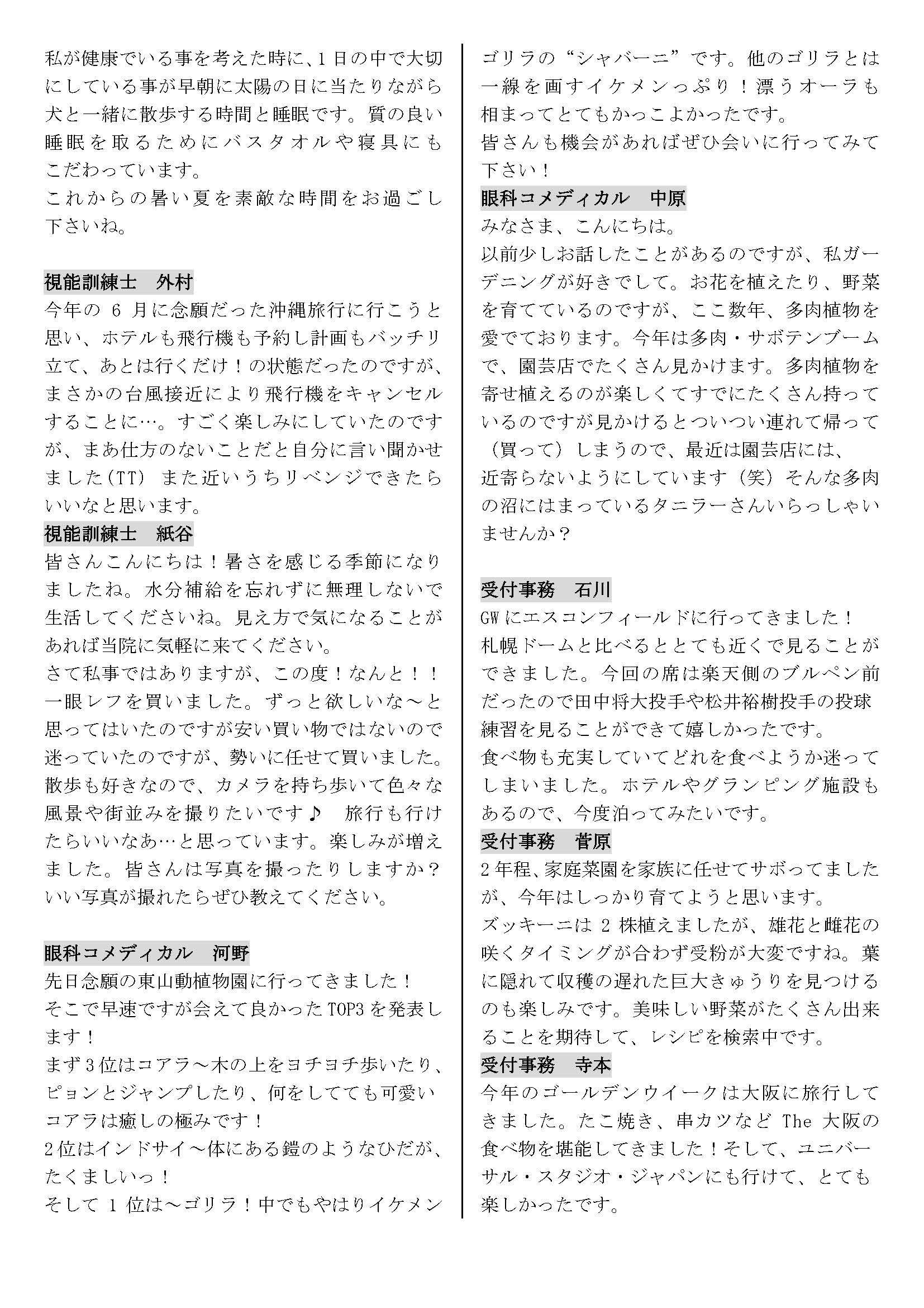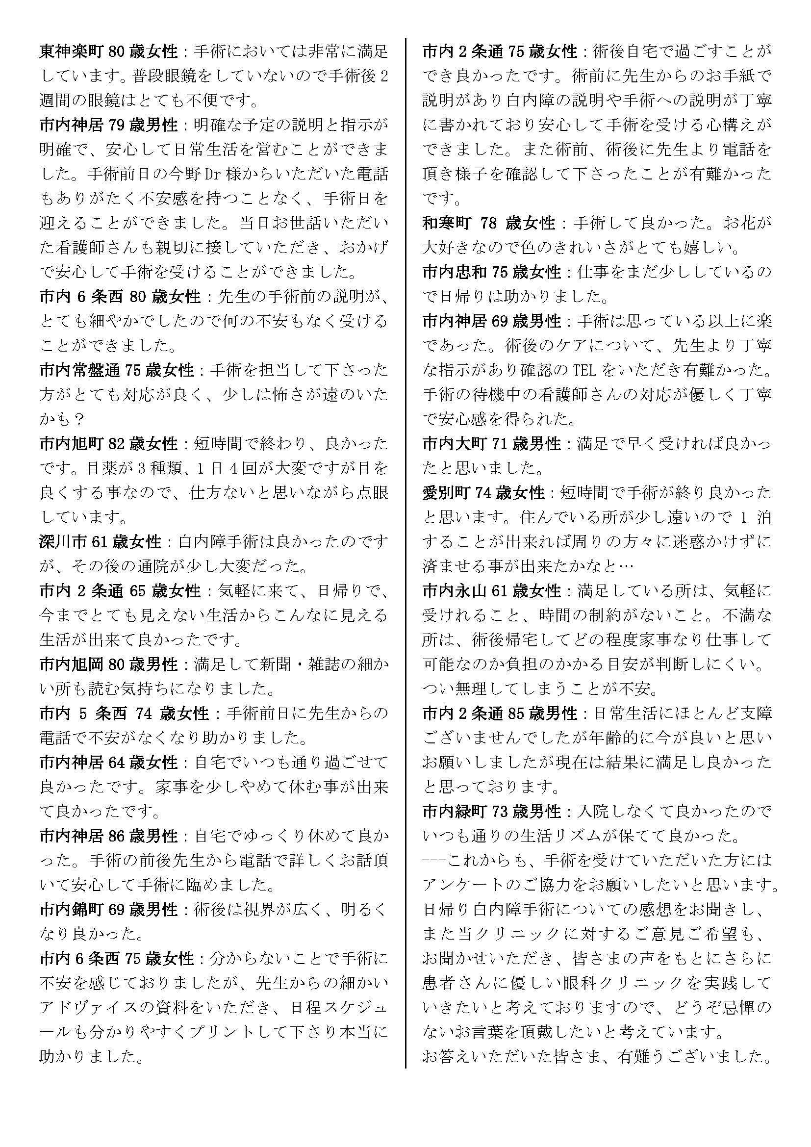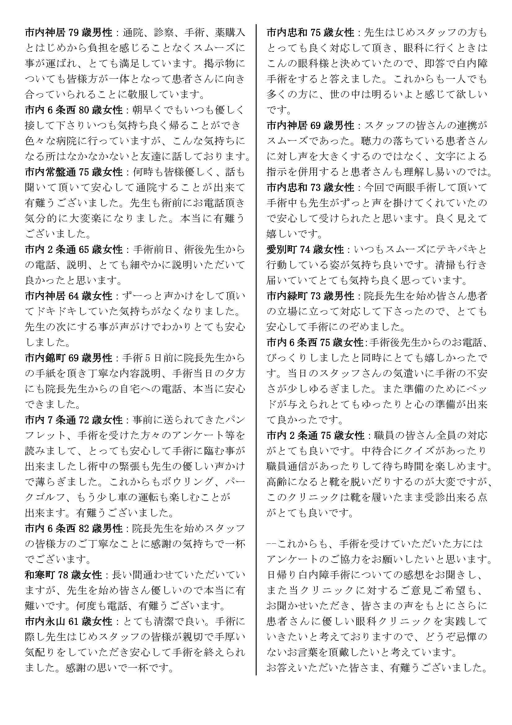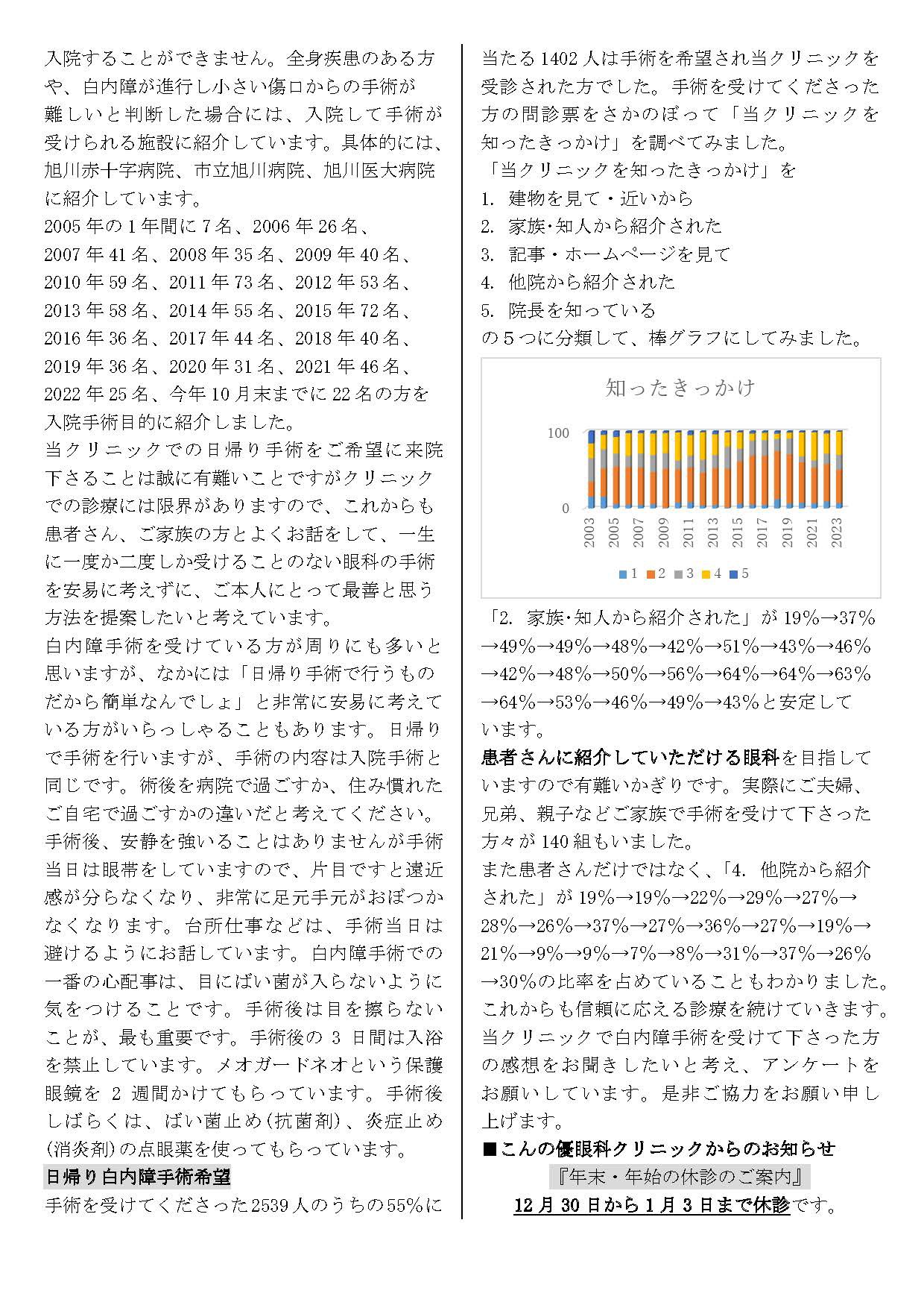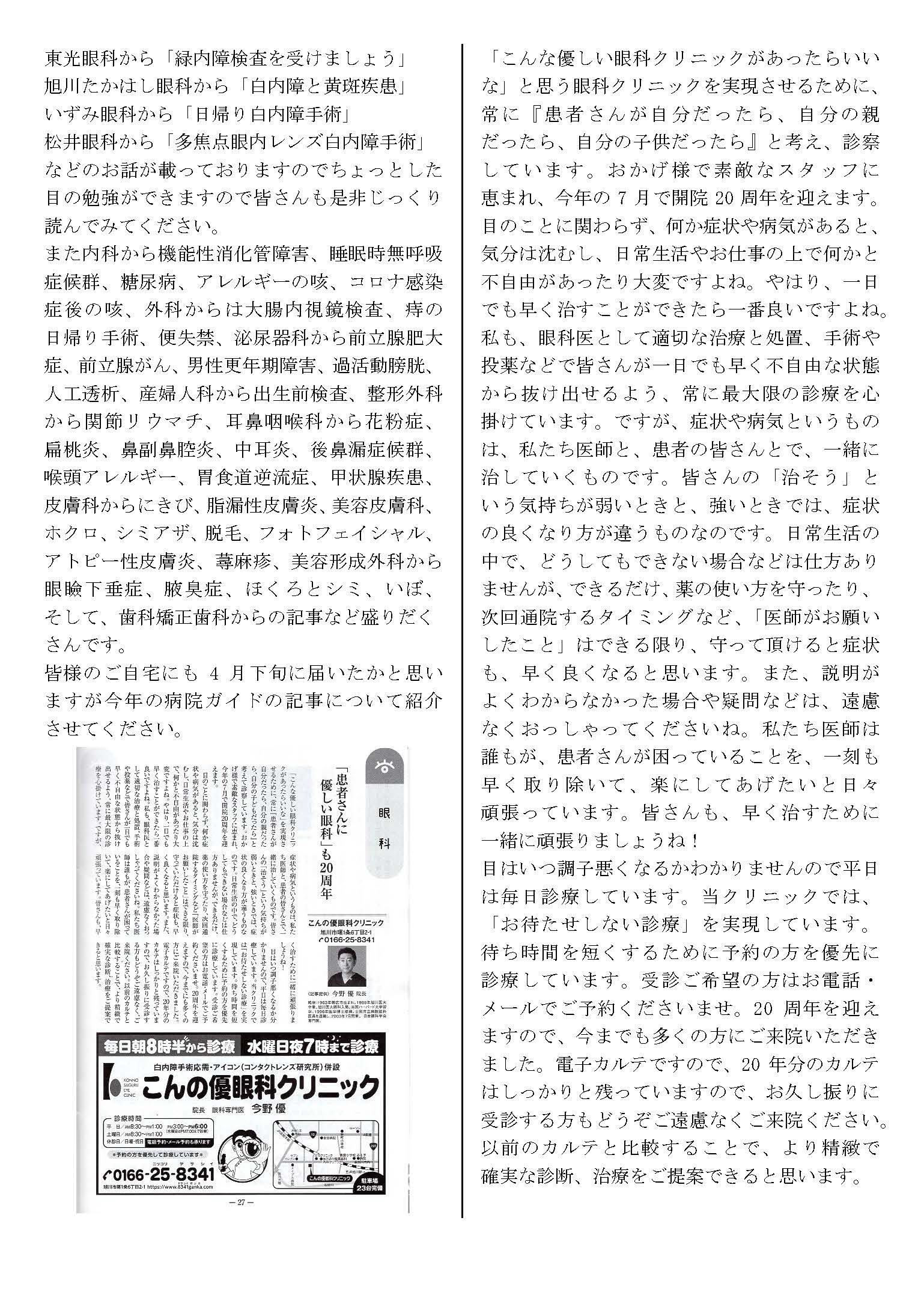 こんの優眼科クリニックは、「患者さんに優しい眼科クリニック」を目指して、平成15年7月26日に開院致しました。開院と同時に、インターネットにホームページを立ち上げました。ホームページのアドレスは8341ganka.com(優しい眼科ドットコム)です。この「優しい眼科通信」では、ホームページに掲載しています情報や、日常診療中には詳しくお話できない目の検査や目の病気などについての情報を、お届けいたします。