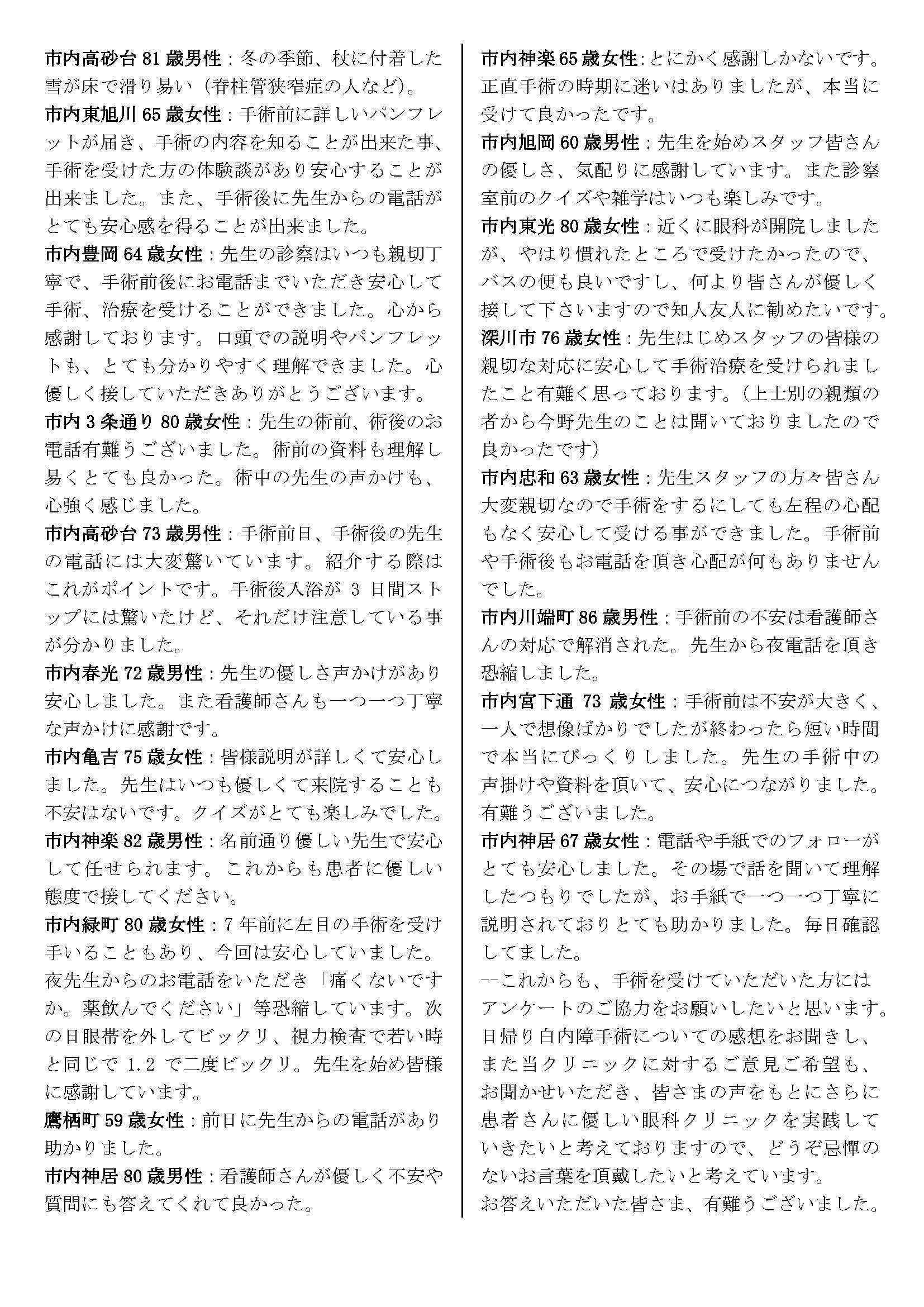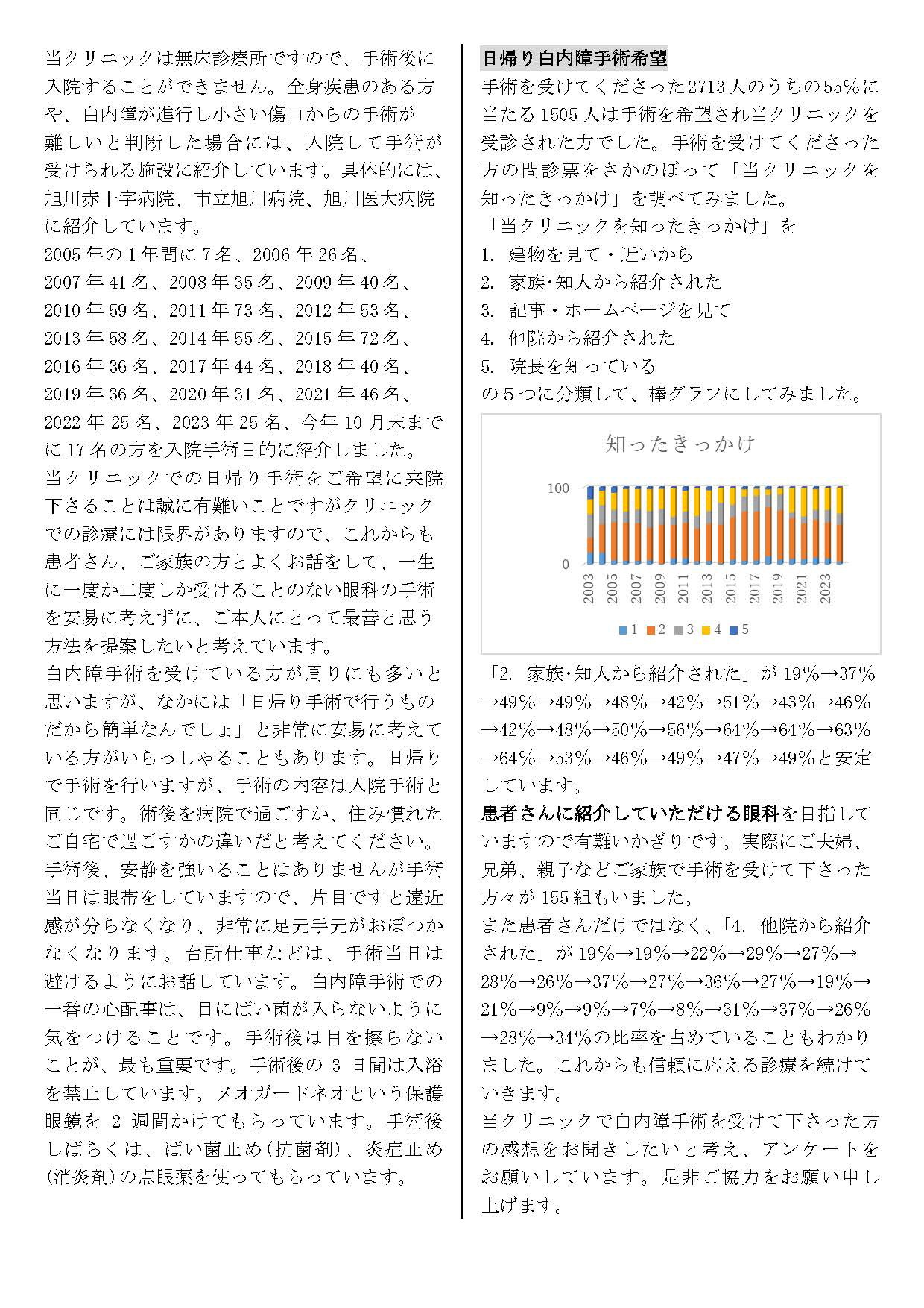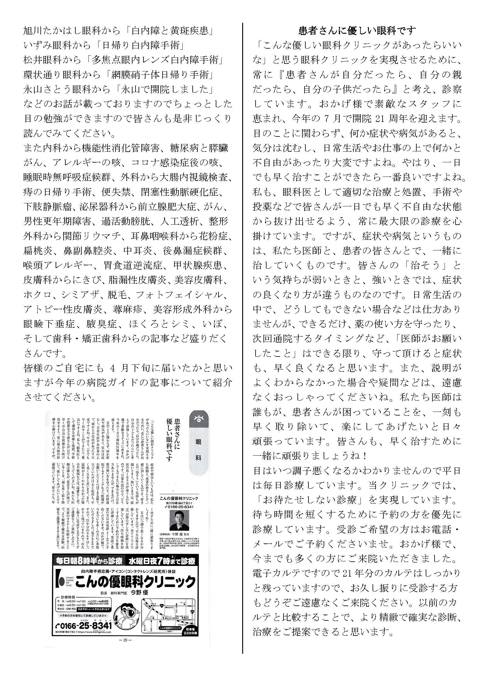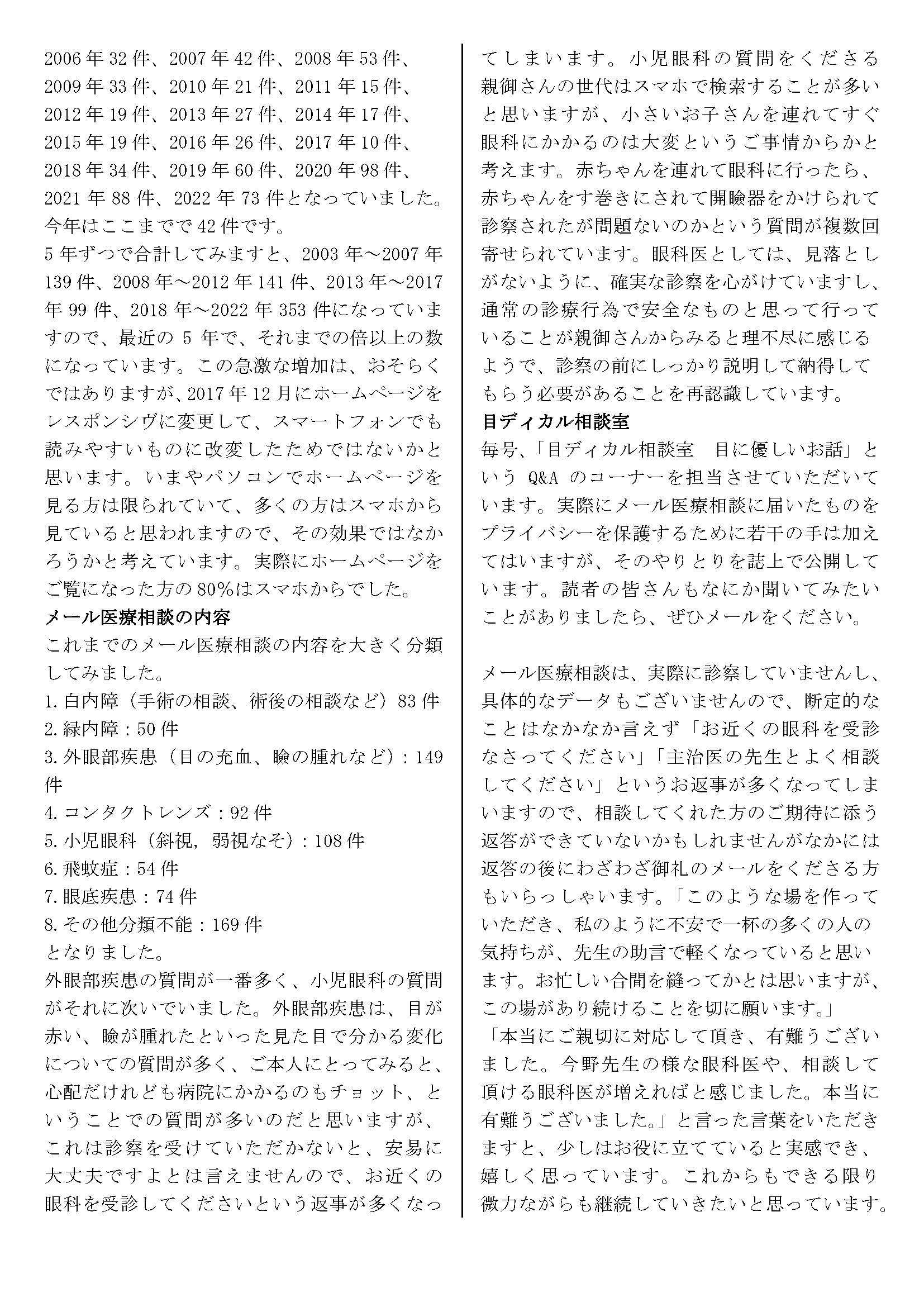 こんの優眼科クリニックは、「患者さんに優しい眼科クリニック」を目指して、平成15年7月26日に開院致しました。開院と同時に、インターネットにホームページを立ち上げました。ホームページのアドレスは8341ganka.com(優しい眼科ドットコム)です。この「優しい眼科通信」では、ホームページに掲載しています情報や、日常診療中には詳しくお話できない目の検査や目の病気などについての情報を、お届けいたします。